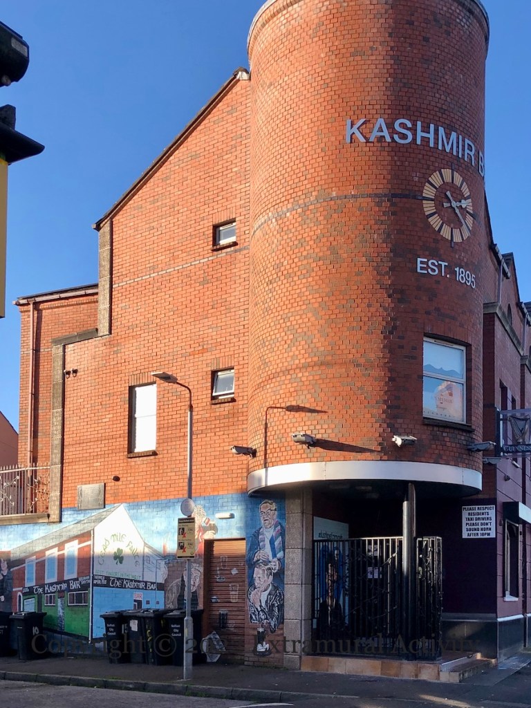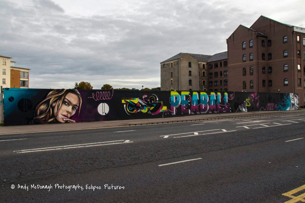 JJB Sports is still closed (since 2012) and the Weatherspoons never materialised, so Leo Boyd’s (web | ig | Fb) art on the hoarding has expanded into a triptych with pieces on either side of No Signal. In June he added the piece on the right (shown below), and now on the left (shown above, with signature) is one in a series called “Are You Sitting Comfortably?” The Vault’s Christmas market is on this weekend at HQ on the Newtownards Road – tickets can be booked on Fb.