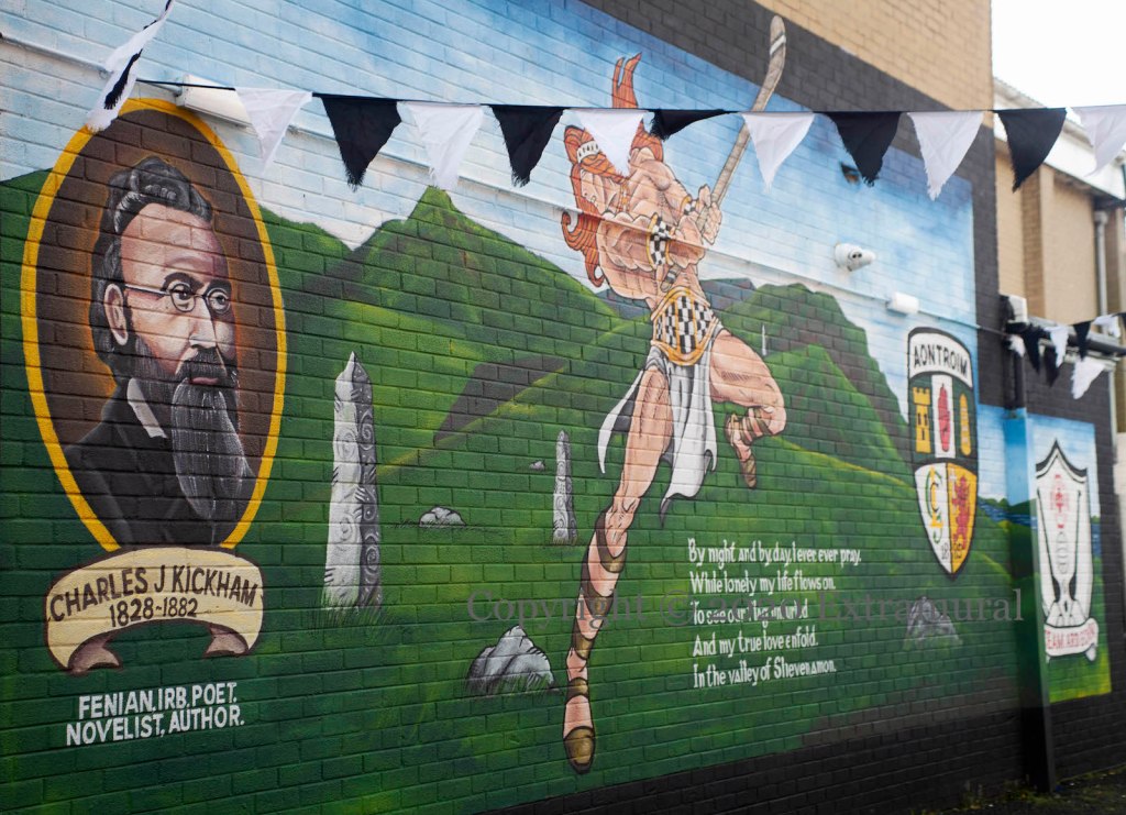 “By night and by day, I ever, ever pray/While lonely my life flows on/To see our flag unfurled/And my true love [to] enfold/In the valley of Slievenamon.” The lyrics are the final lines of The Valley Of Slievenamon, written by Charles J Kickham “fenian, IRB, poet, novelist, author” and much loved in Tipperary. The heroic hurler, however, is Cú Chulainn (rather than the midlands’ Fıonn Mac Cumhaıll). Ardoyne Gaelic games club Cıceam Ard Eoın (tw | Fb) was founded in 1907, 25 years after Kickham’s death.