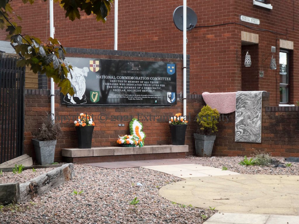 “National Commemoration Committee – erected in memory of all those comrades who dedicated their lives for the establishment of a democratic, secular, socialist republic. ‘I have given whatever I had to give for the party, the people of Ireland, and for a better world, but others have given more, much more. Comrades have given their lives’ – Tomás Mac Giolla TD. ‘For the unity of Protestant, Catholic and Dissenter.'”