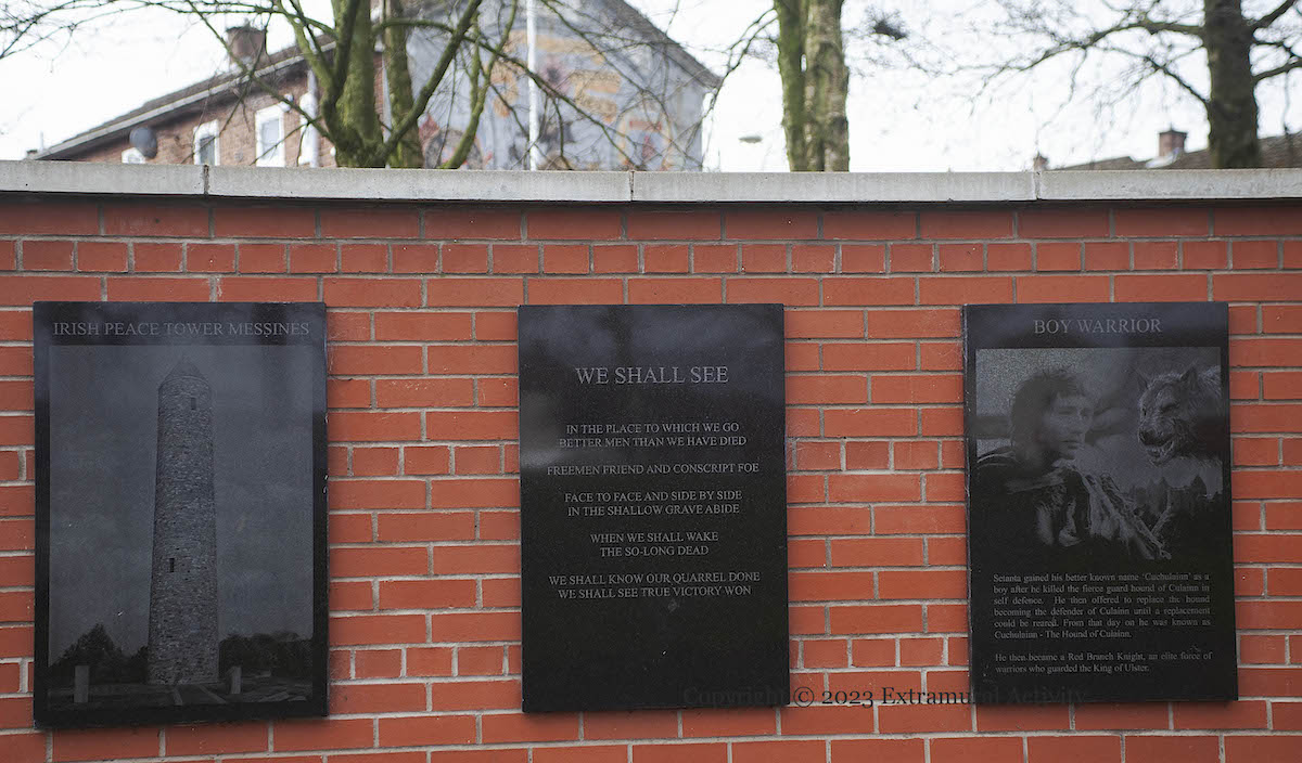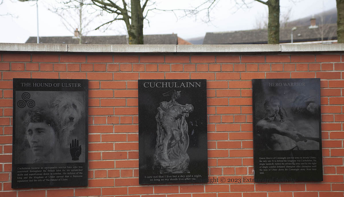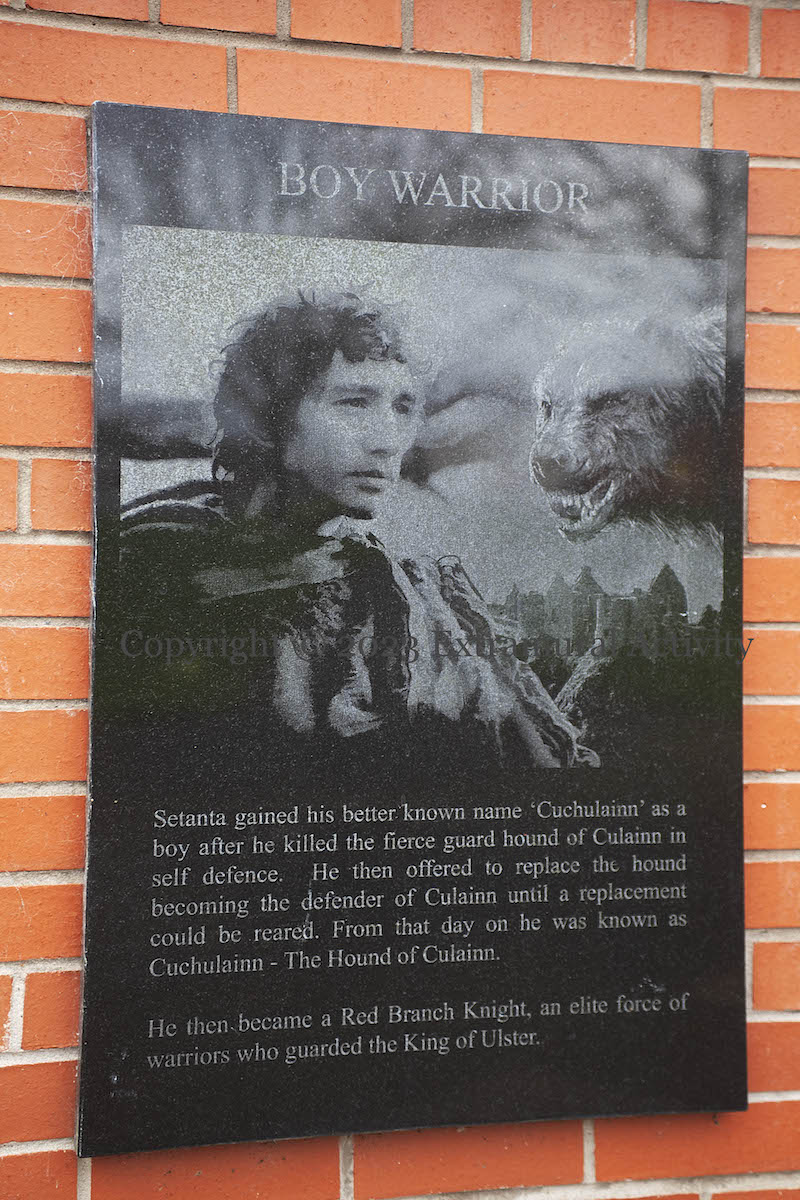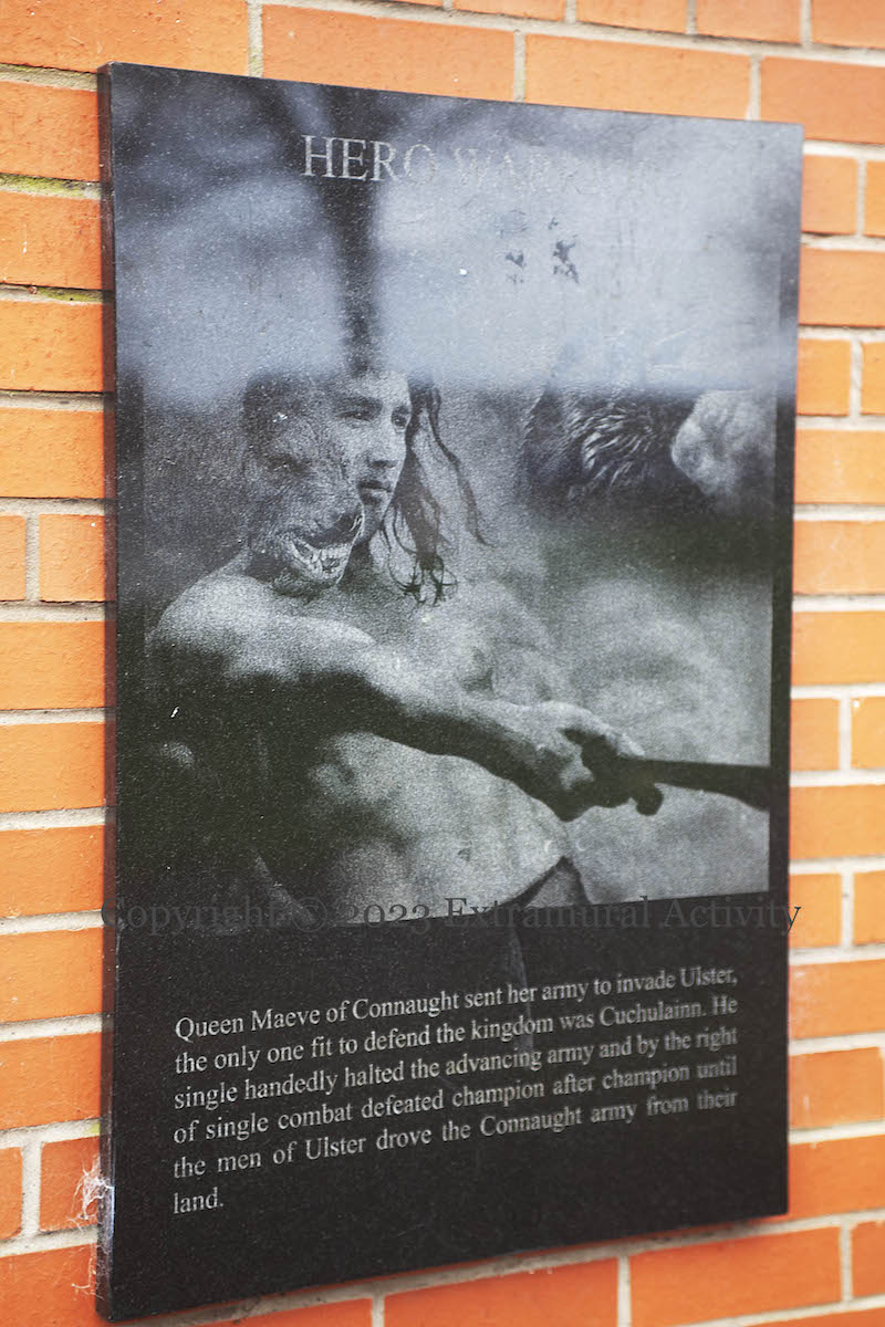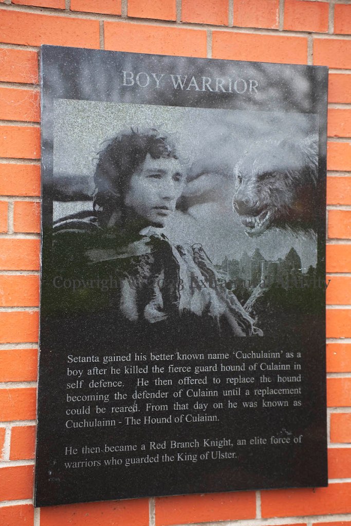 The five Cú Chulaınn panels are (from left to right) Boy Warrior, Hound Of Ulster, Sheppard’s statue, Hero Warrior, and Defender Of Ulster – all shown individually in this post.