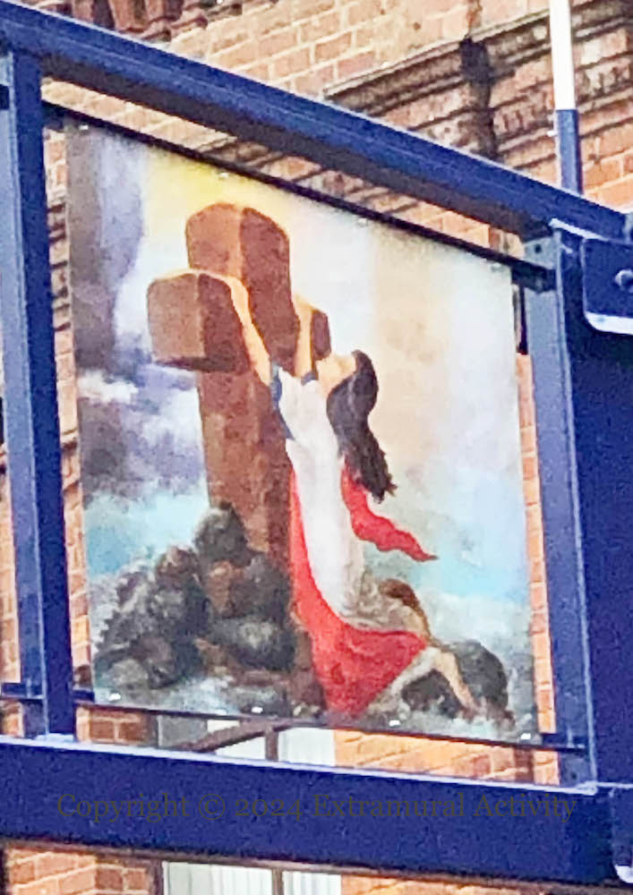 Third and fourth, the boards on the lawn and the painted columns of the railway bridge on St Bride’s Street/North Road.