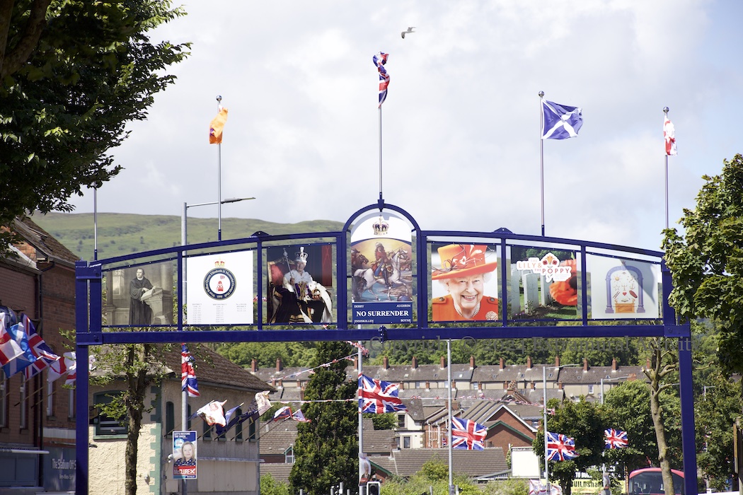 Castlemara residents’ various emotions are on display at the entrace to the estates: celebrating the jubilee of Elizabeth II, the coronation of Charles III, the creation of Northern Ireland in 1921, and Rangers’ 55th league title; saluting Tom Moore; commemorating Prince Philip, 1921-2021; and remembering with gratitude the “100th anniversary of the Battle Of The Somme”: “We must not forget what they gave so we may live. Let not their deaths be in vain. Lest we forget.”