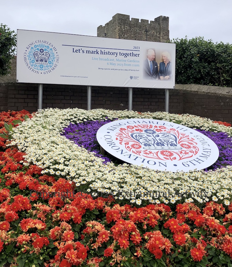 About 100 people came out to Marine Gardens for the live broadcast of the coronation of Charles III on May 6th (Mid & East Antrim youtube), one of about nine such live-streams across Norther Ireland (Bel Tel).
