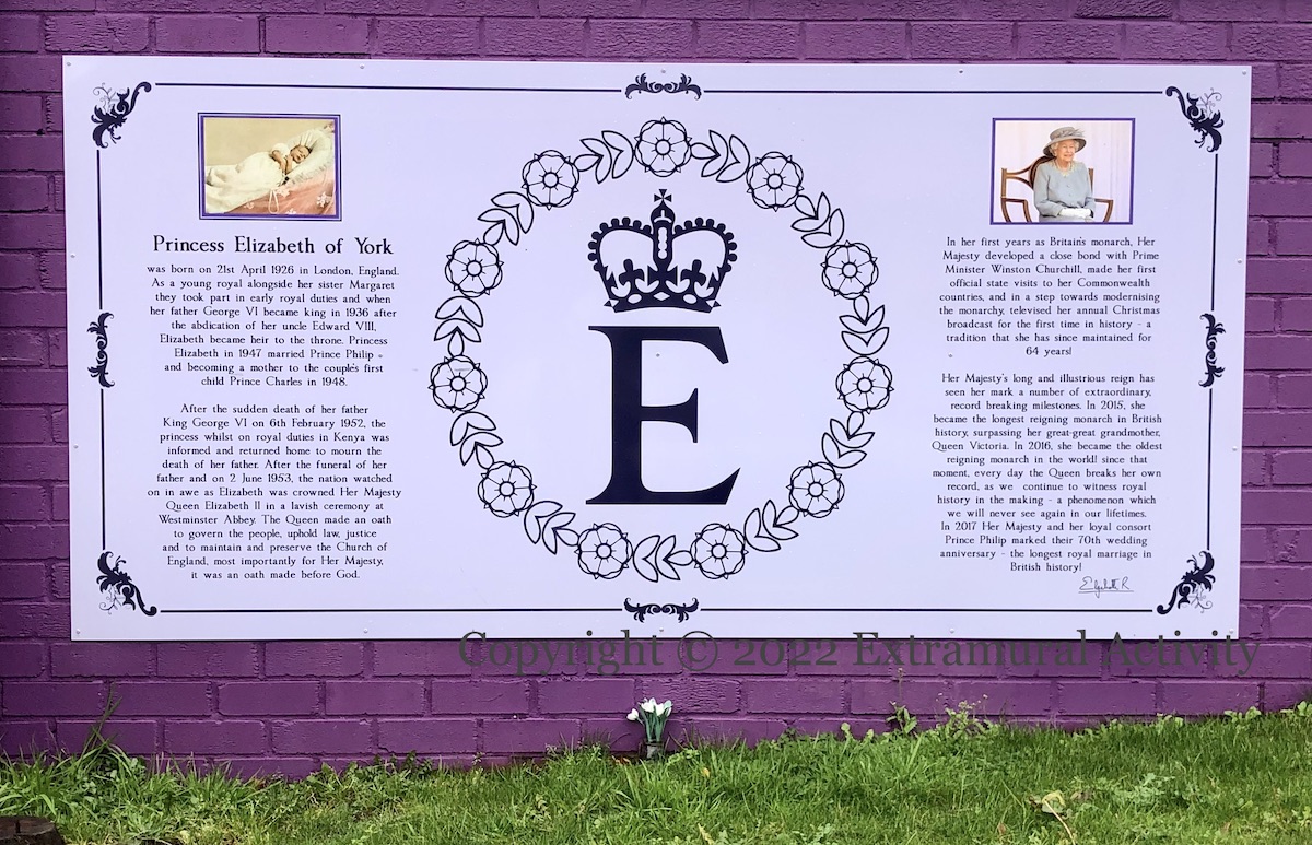 “This artwork was commissioned by Queens Park Women’s Group to celebrate the platinum anniversary of the reign of our beloved monarch Queen Elizabeth II and was officially opened by Mr David McCorkell KStJ, Her Majesty’s lord-lieutenant for County Antrim on 25th August 2022.”