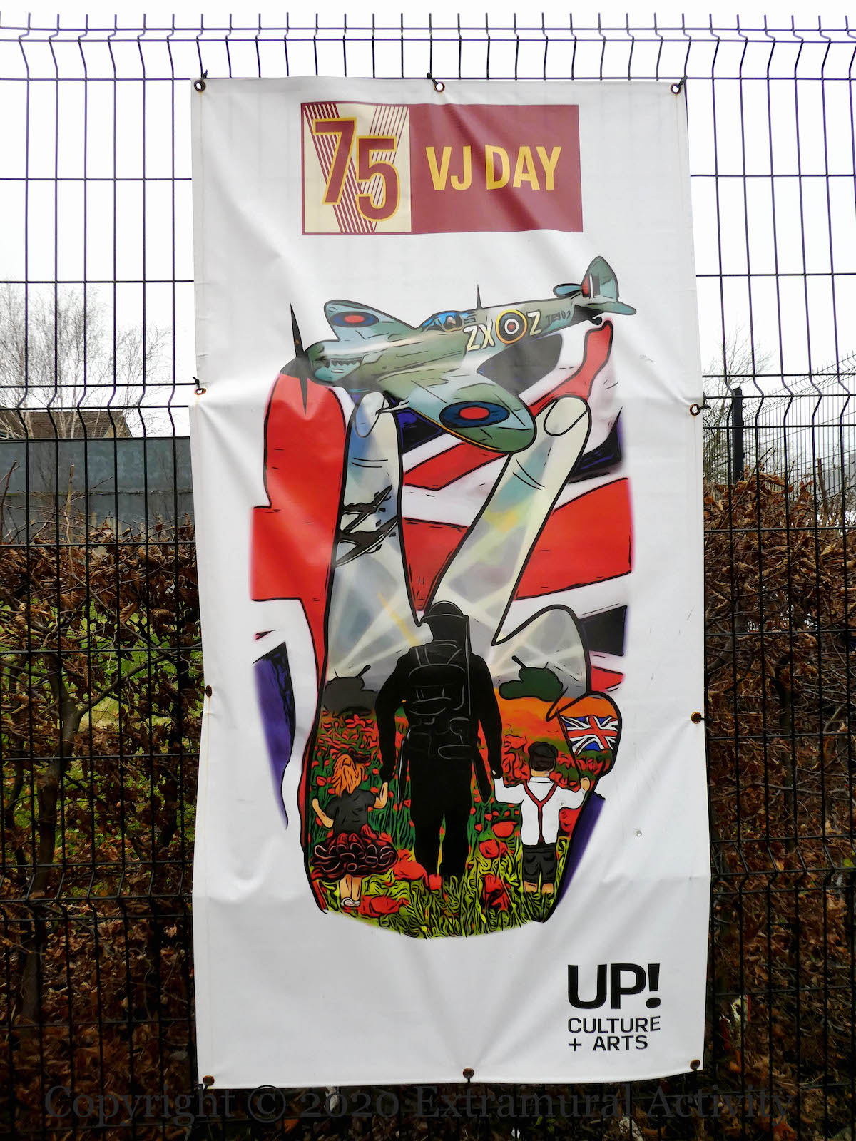 August 15th, 1945, saw the end of the second World War in the Pacific theatre, effectively ending the war as a whole. The 75th anniversary of the event was celebrated on the Shankill by and Up! Culture + Arts. Belfast Councillor (and 2020 High Sheriff) Nicola Verner has video (tw) of the tarp on the float that paraded along the Shankill on the day itself. With sponsorship from the Executive and the Greater Shankill Partnership (tw).