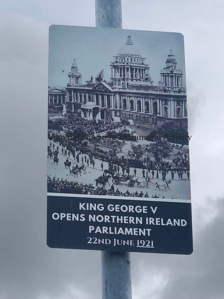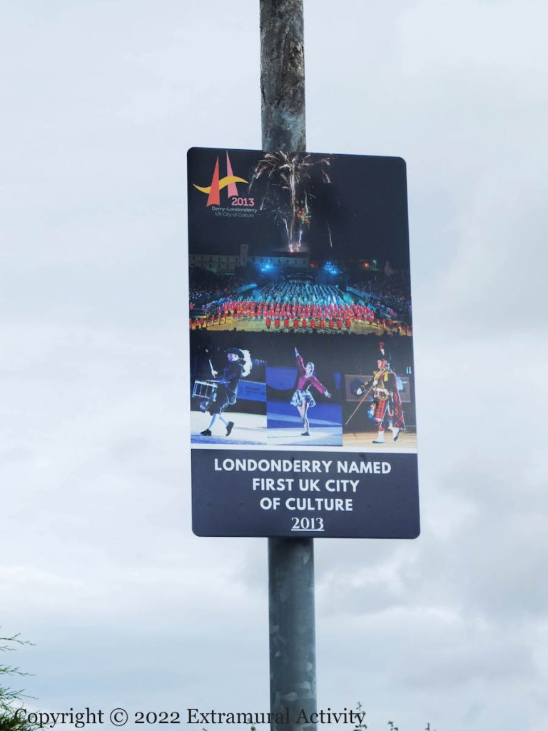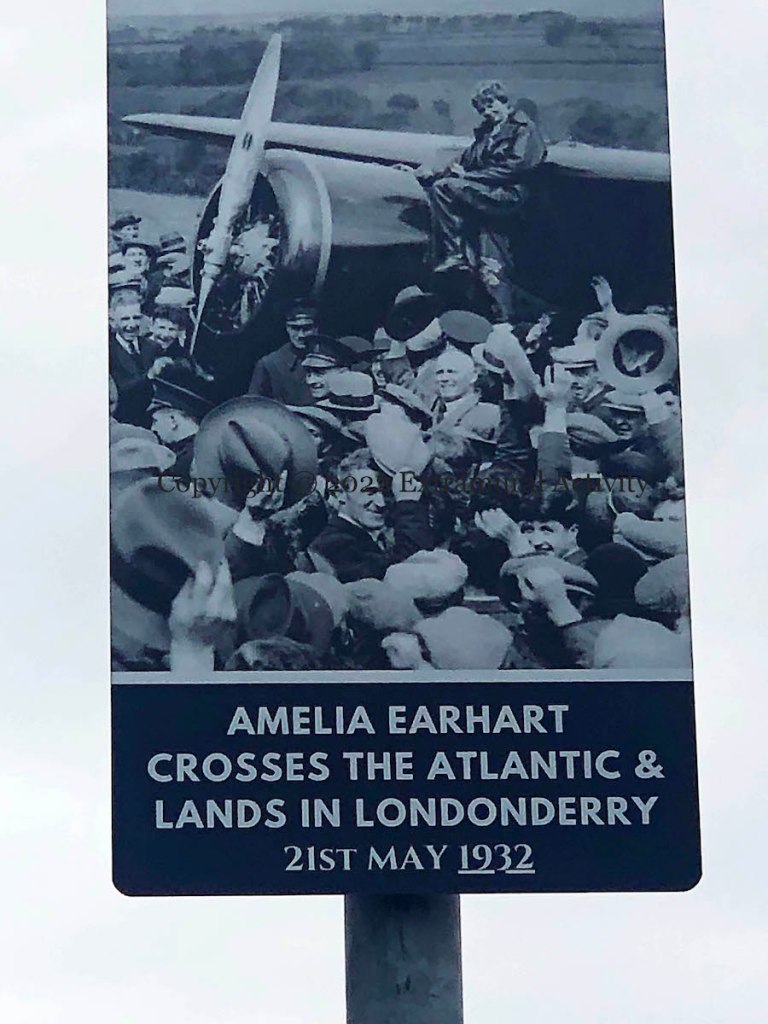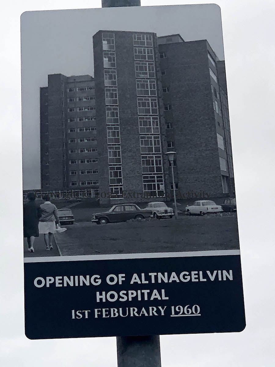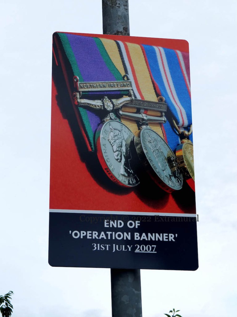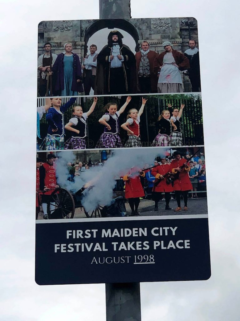 Here is a 12-part history of Northern Ireland (and specifically Londonderry) along the length of Sperrin Park in the Caw. After the title panel, the topics are: King George V opens Norther Ireland Parliament, 22nd June, 1921; Amelia Earhart crosses the Atlantic & lands in Londonderry 21st May, 1932; Operation Deadlight: surrender of German U-boats at Lisahally 14th May, 1945; Queen Elizabeth II visits Guildhall Sq. Londonderry 3rd July, 1951; opening of Altnagelvin hospital 1st February, 1960; the exodus of people from Londonderry’s Cityside 1970s; Northern Ireland reach the World Cup finals in Spain 1982; first Maiden City Festival takes place August, 1998; end of ‘Operation Banner’ 31st July, 2007; Londonderry named first UK City Of Culture 2013; Prince Philip the Duke Of Edinburgh 1921-2021.
