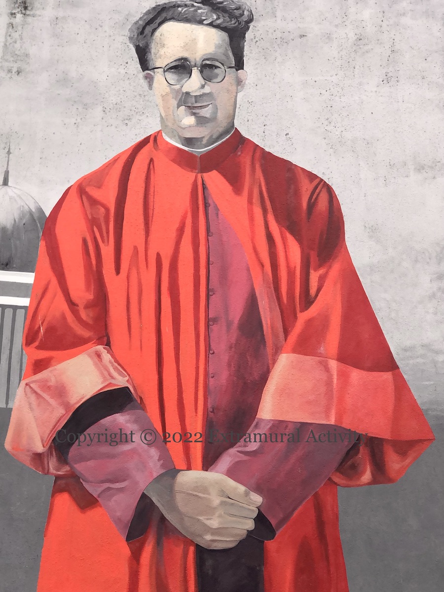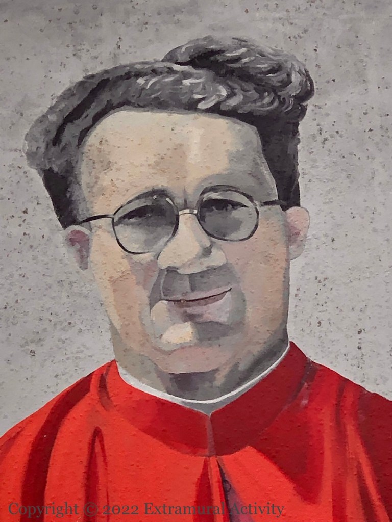 Hugh O’Flaherty – the Scarlet Pimpernel Of The Vatican – is thought to have helped save 6,425 soldiers and Jews who were at large after the fall of Mussolini but prior to the German occupation of Italy and who made it to Rome to see O’Flaherty or the still-functioning Irish embassy at the Holy See. O”Flaherty was raised in Killarney and died in Cahersiveen; he is remembered in Killarney by this mural – painted by Ursula Meehan (ig) in High Street with support from Killarney Art Gallery (web) – and a statue by Alan Ryan Hall (killarney.ie) in Mission Road.
