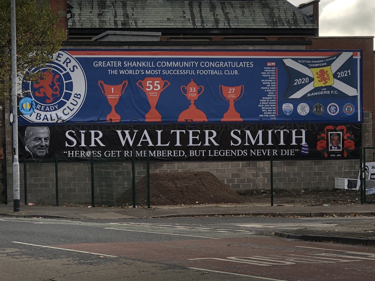 The text on the board reads: “Stevie was raised in The Village Area of South Belfast. He was just a young man when The Troubles started but without hesitation answered the call by joi[ni]ng the Village RHC. He soon started making a name for himself by putting himself on the front line with his brothers in arms in the RHC. These men where [sic] one of the most active units in Ulster by taking the fight the republicans. In 1972 at the height of The Troubles Stevie was sentenced to life for his part in a retaliation shooting and was imprisoned in Long Kesh. After serving 15 years with dignity and courage he was released. On the 16th February 1989 just after receiving his last pay cheque [from a transitional work scheme] he decided to join a few friends in The Orange Cross Club in the Shankill area. This would be his last drink as republican scum decided to target the Loyalist club. Stevie sacrificed himself to protect his friend by throwing himself in front of a hail of bullets. Stevie died 2 days later from his injuries in the Royal Victoria Hospital.”