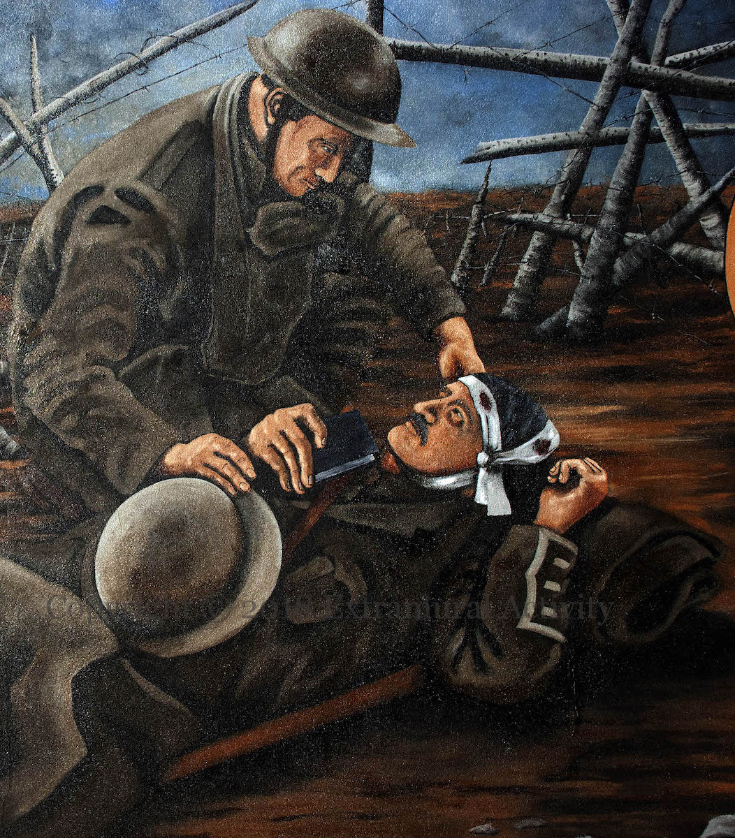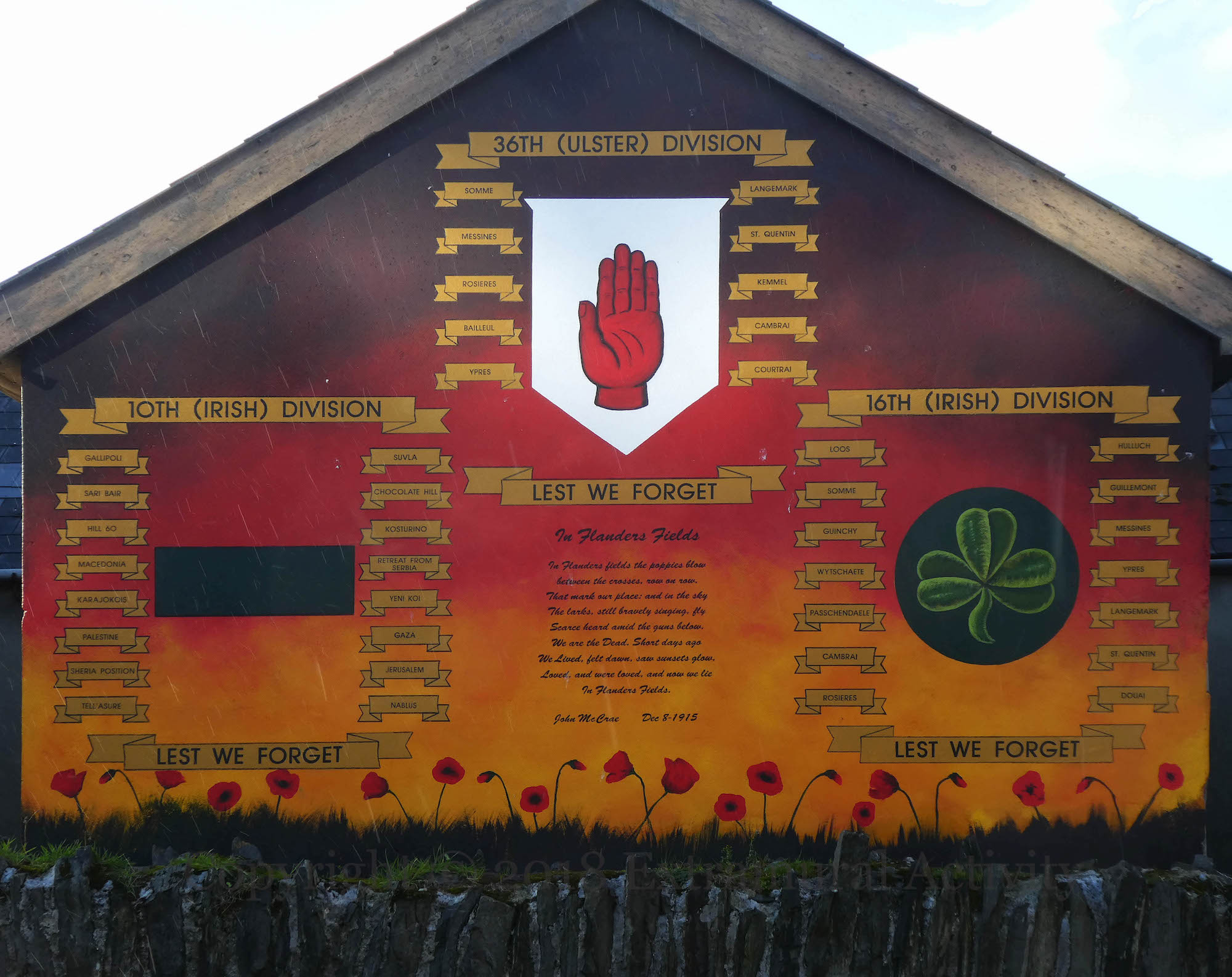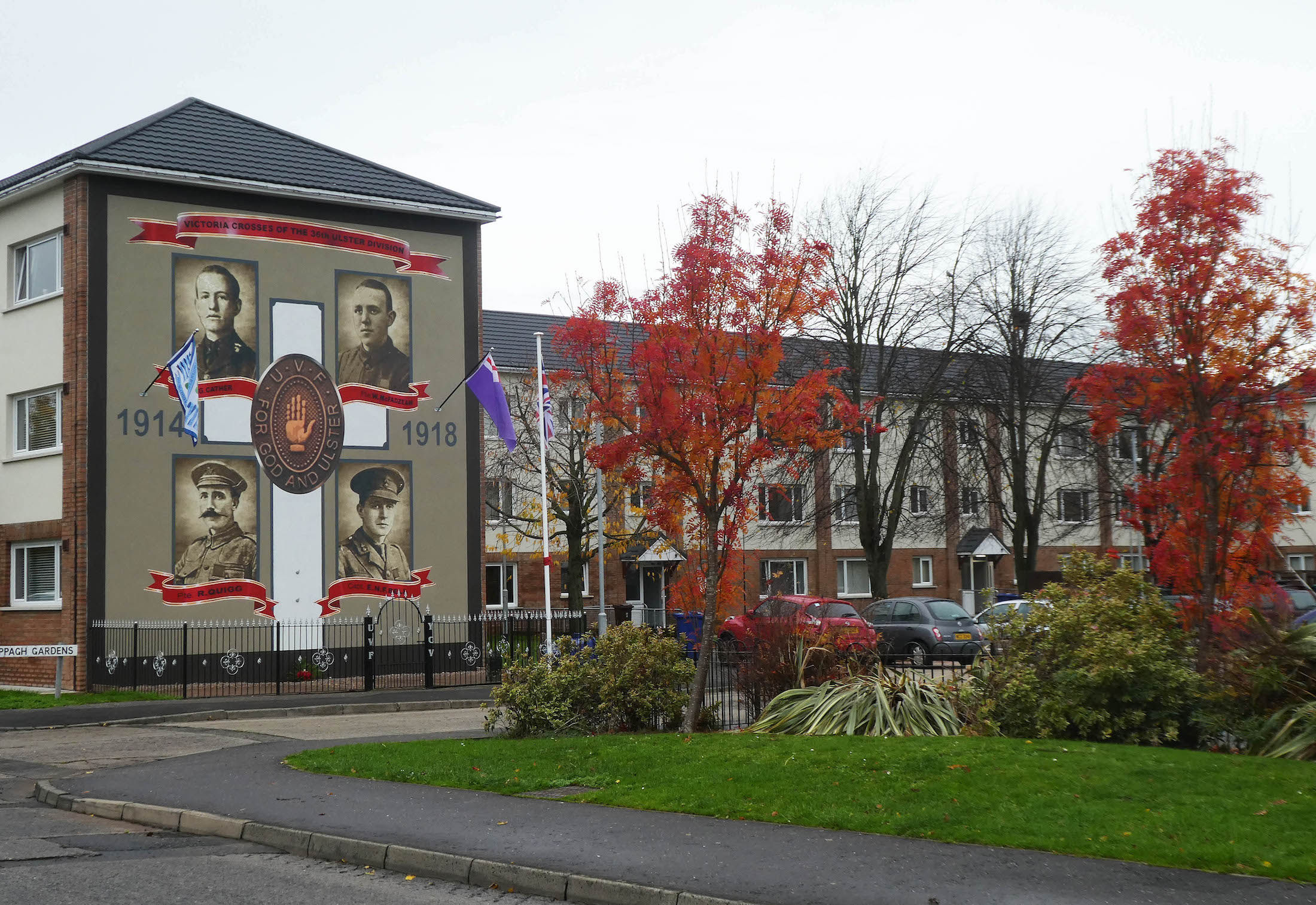 Alongside McFadzean, the hero of WWII is Blair “Paddy” Mayne, who was only briefly in the Ulster Rifles before making his name in the Parachute Unit (later, and better, known as the SAS). His many medals of honour are shown in an old Newtownards mural though he was denied the VC.