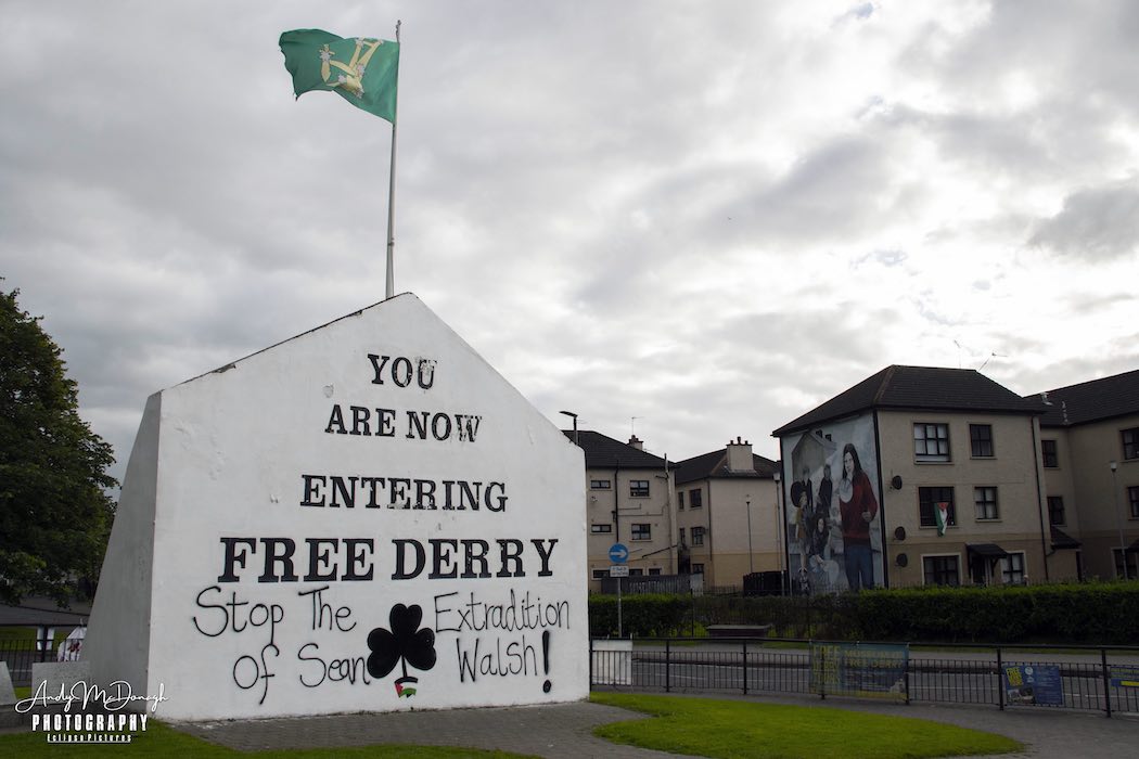 The black shamrock in the centre of the wall pre-dates the Walsh graffiti – see Black Shamrock for its significance. Free Derry Corner has its own Visual History page.