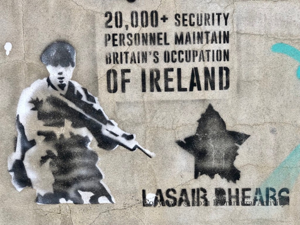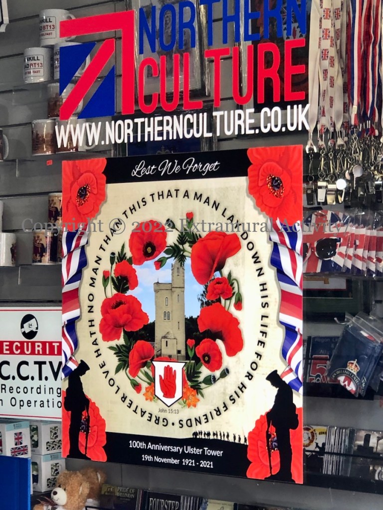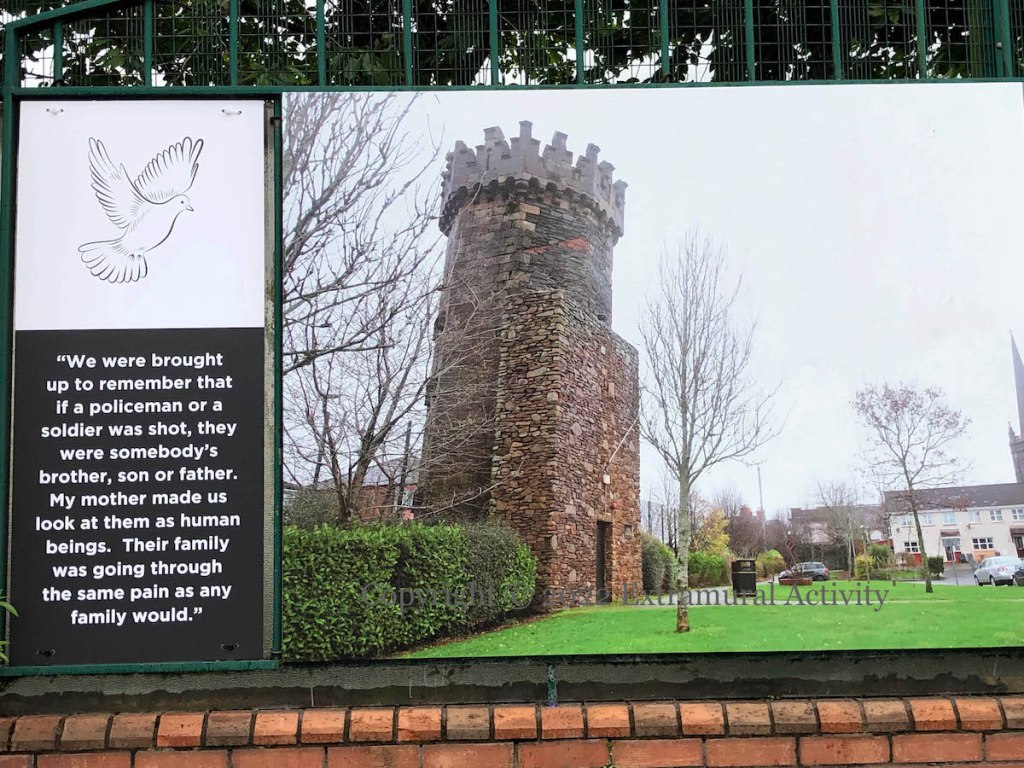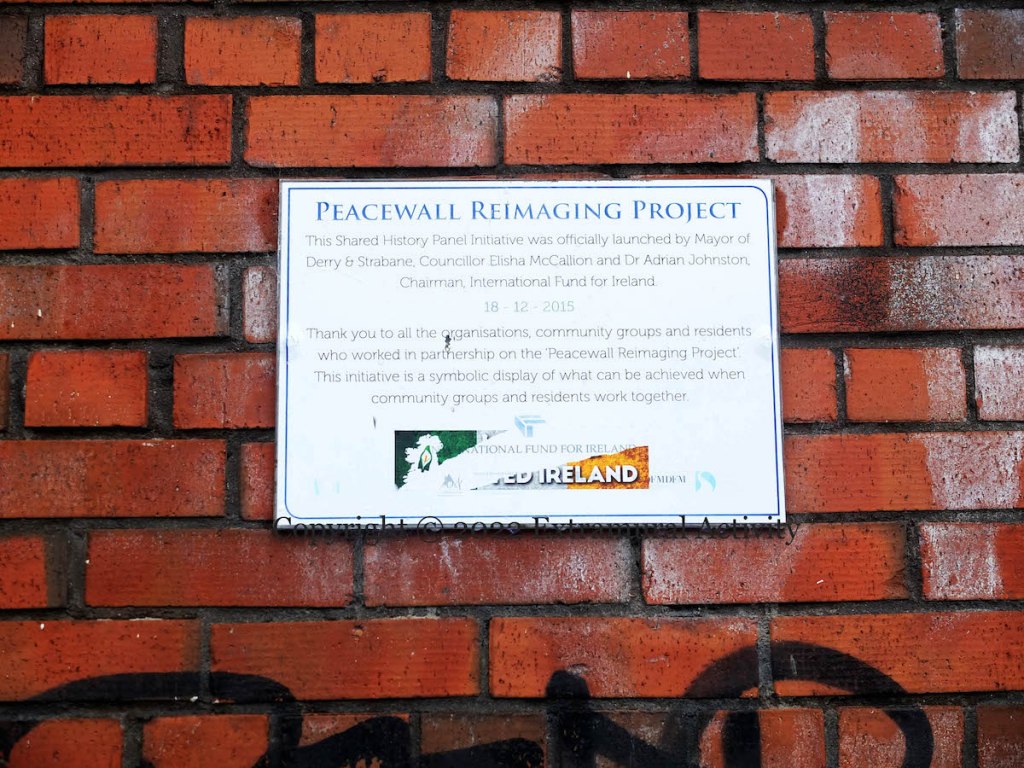Here is a 12-part history of Northern Ireland (and specifically Londonderry) along the length of Sperrin Park in the Caw. After the title panel, the topics are: King George V opens Norther Ireland Parliament, 22nd June, 1921; Amelia Earhart crosses the Atlantic & lands in Londonderry 21st May, 1932; Operation Deadlight: surrender of German U-boats at Lisahally 14th May, 1945; Queen Elizabeth II visits Guildhall Sq. Londonderry 3rd July, 1951; opening of Altnagelvin hospital 1st February, 1960; the exodus of people from Londonderry’s Cityside 1970s; Northern Ireland reach the World Cup finals in Spain 1982; first Maiden City Festival takes place August, 1998; end of ‘Operation Banner’ 31st July, 2007; Londonderry named first UK City Of Culture 2013; Prince Philip the Duke Of Edinburgh 1921-2021.