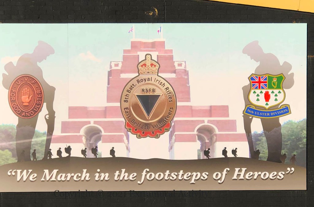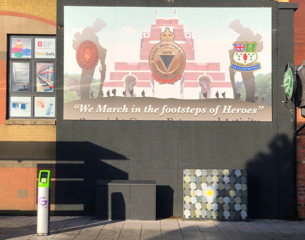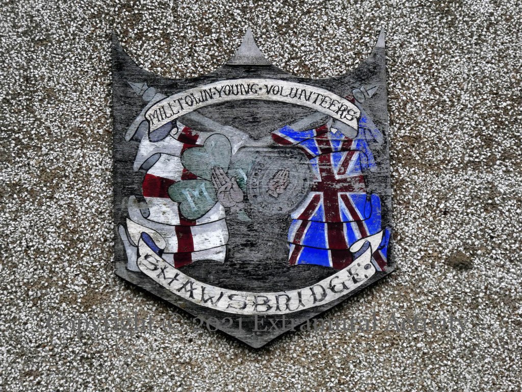 “Operation Lion” was the code named for what is commonly known as the Larne Gunrunning using the ship Clyde Valley which had been renamed Mountjoy II for the occasion (WP) and which now lends its name to a flute band in the area. The hooded gunman on the right is carrying a more modern rifle, rather than surplus German and Italian WWI rifles that came ashore in April, 1914 (Full 30).