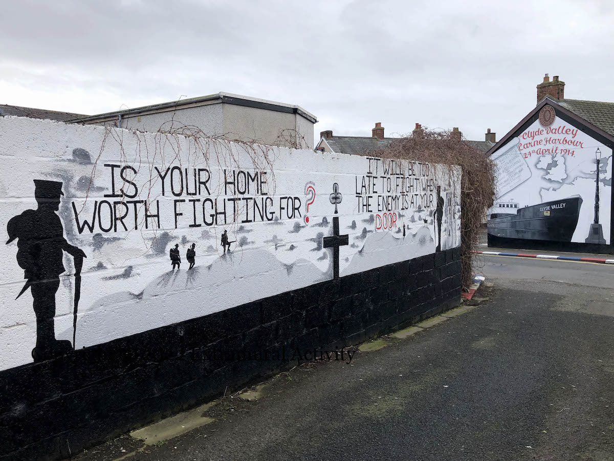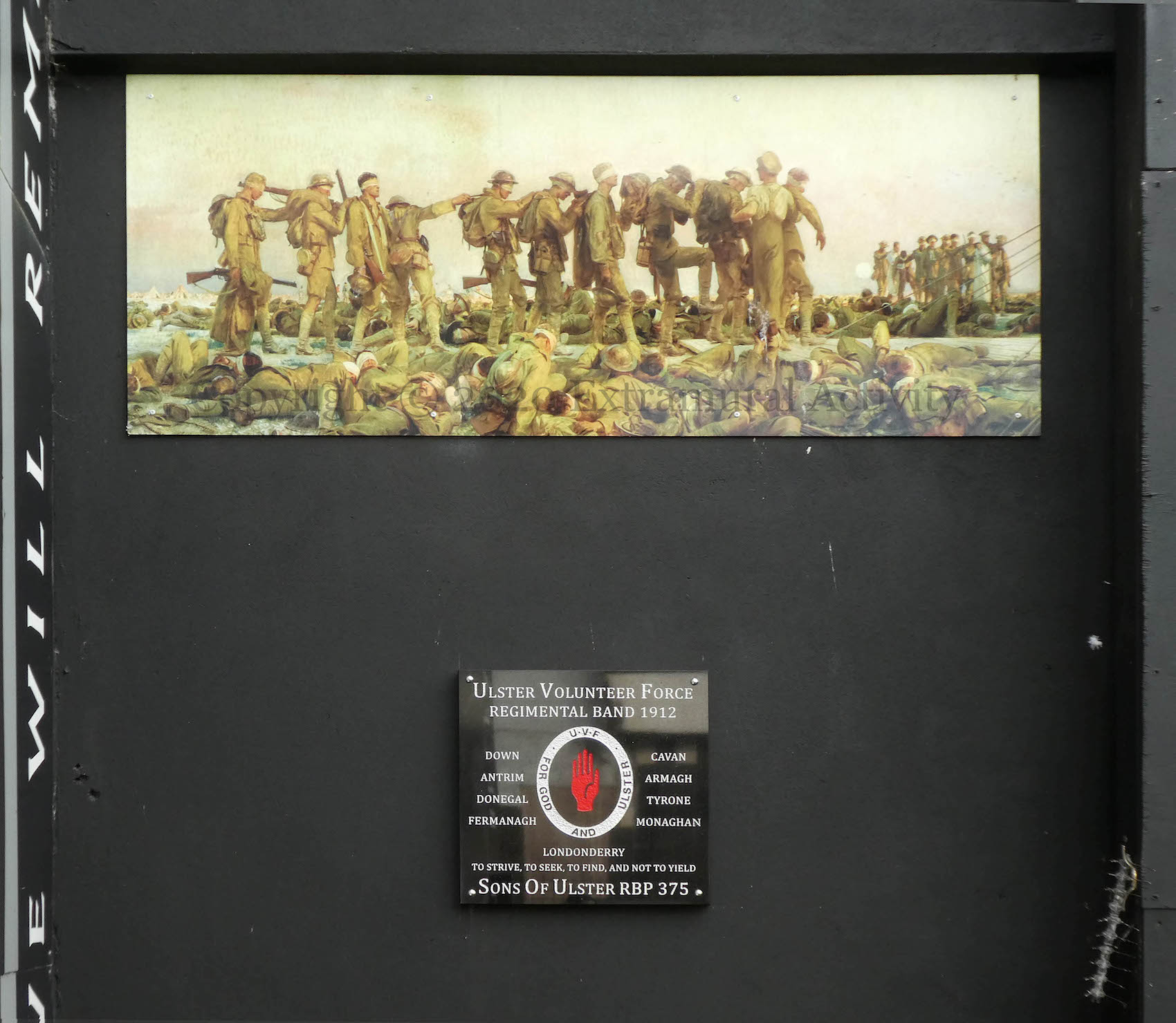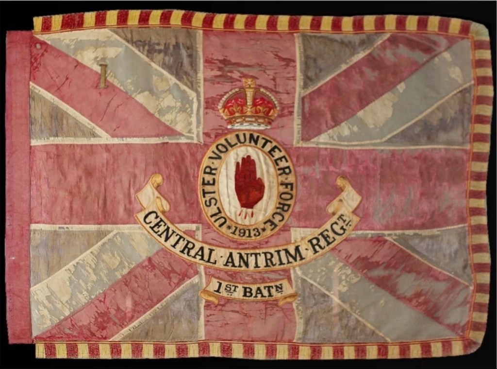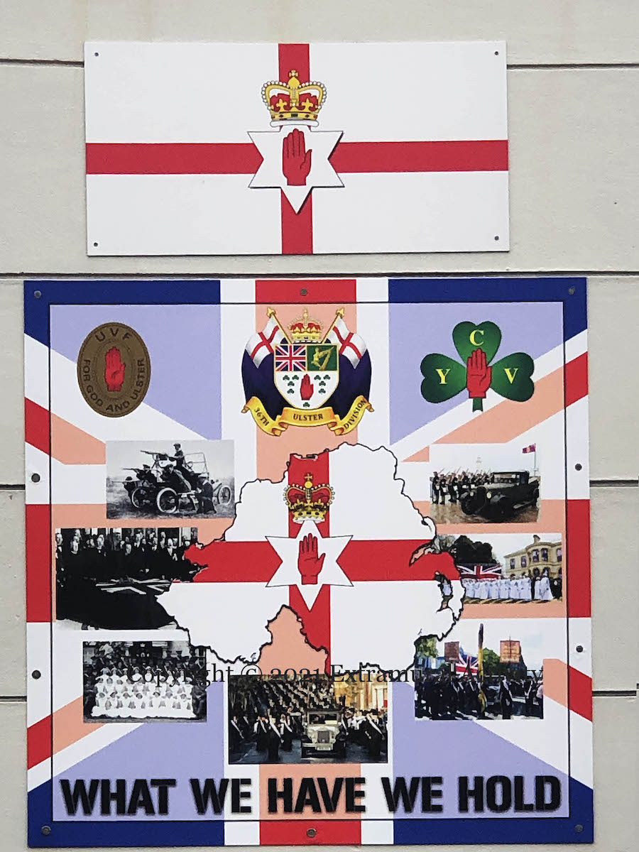 The placard in the middle, between Brothers In Arms and “Sir E. Carson K.C., M.P.” was discussed in Stand Firm. The Winning Hand was seen previously in The Red Hand And The Winning Hand.