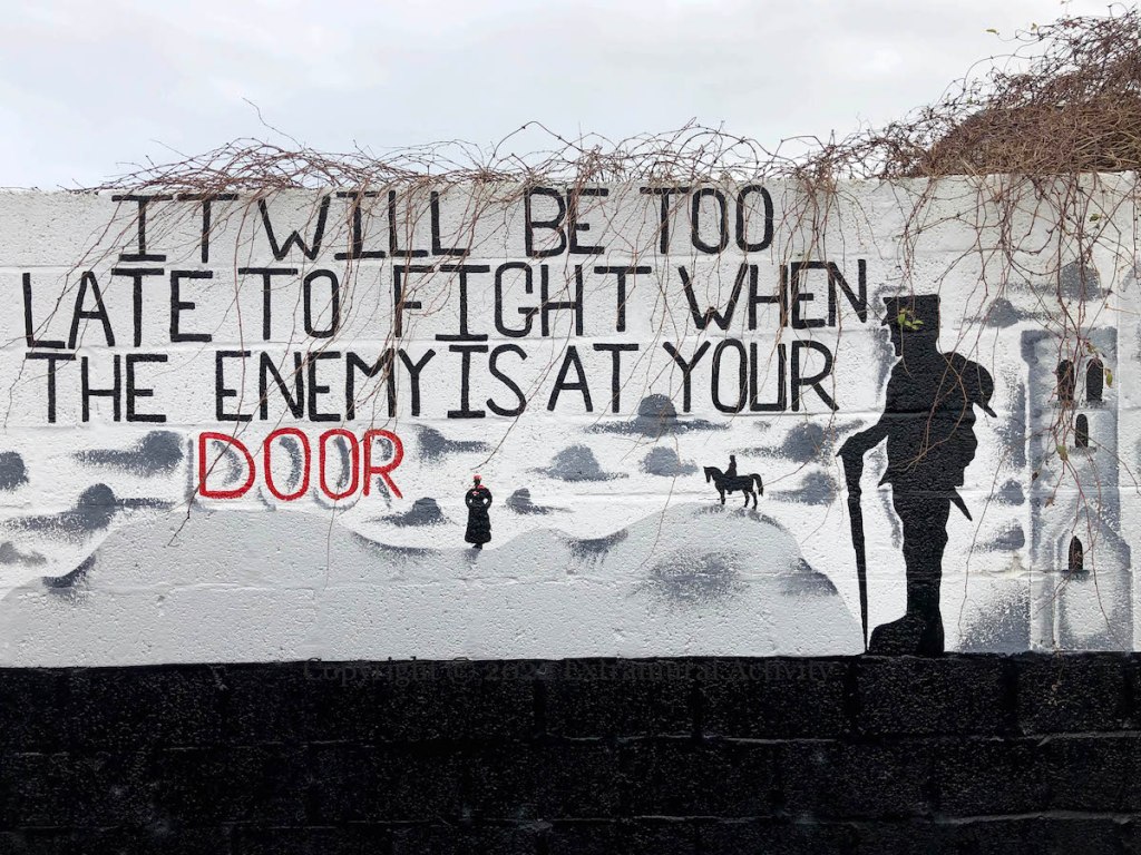 “Ulster & Israel – brothers in arms”. The Uzi was developed in Israel in the late 1940s and became a general-issue weapon in 1956 (WP). It was used (and copied) by loyalist paramilitaries in Northern Ireland (Balaclava Street has a comprehensive history of loyalist weaponry) and appeared in a both UDA and UVF murals and graffiti: The Elite | Ulster Says No! To The Politicians | Sandy Row 2nd Batt | UFF Uzi.