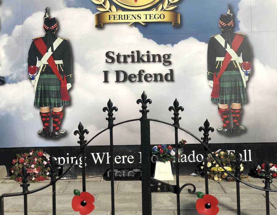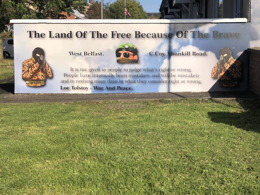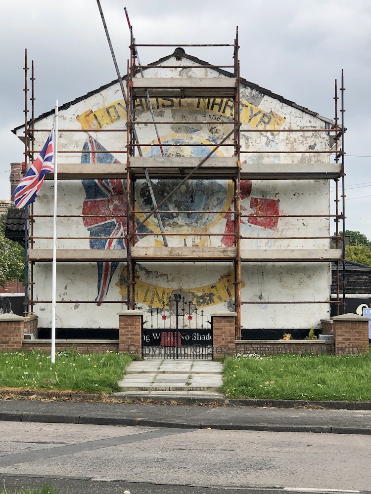 The side-wall, home to painted Orange Order symbols since 2017, has been painted black and a board (above) added to E company from Tiger’s Bay. (It’s possible “North Belfast brigade” and “3rd battalion” are the same thing.)