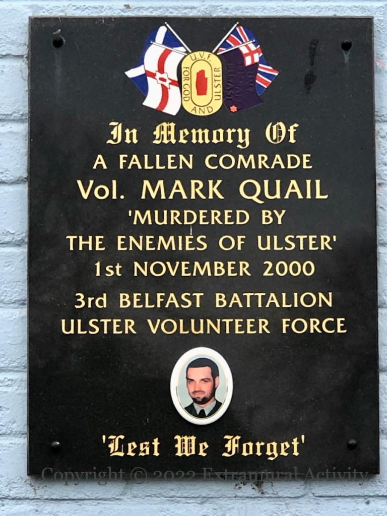 Mark Quail, of the UVF, was “murdered by the enemies of Ulster” – that is, shot by the UDA – at his Rathcoole home on November 1st, 2000. His was the fourth death in four days (after David Greer, Bertie Rice, Tommy English) (Irish Times) as the UVF-UDA feud that began in the Shankill with the infamous “loyalist day of culture” in August 2000 spread to north Belfast and Newtownabbey (though the BBC says they are unrelated). There were also attacks in east Belfast (BelTel) before the feud ended in mid-December (BBC | Guardian).