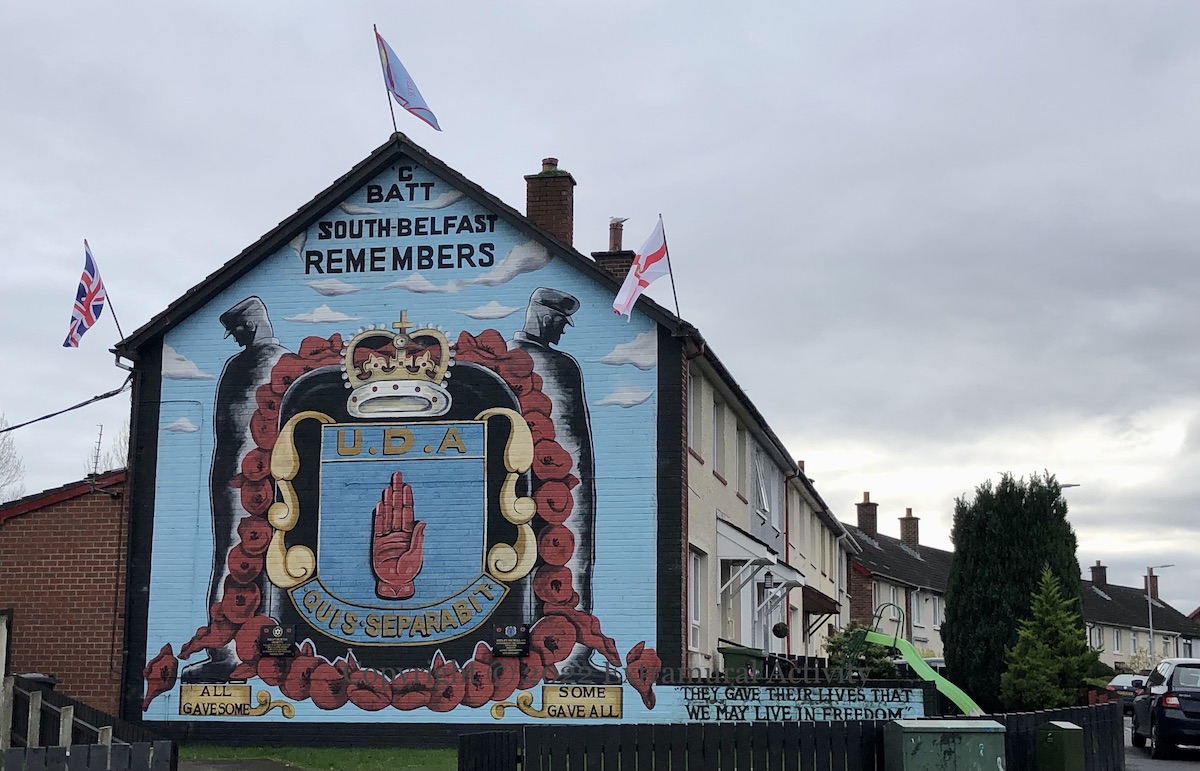 This pair of hand-painted (and stencilled) boards is next to the Mount Inn on North Queen Street. Tiger’s Bay is loyal to the memory of “1690” and the service of the 36th Division in WWI in 1916.
