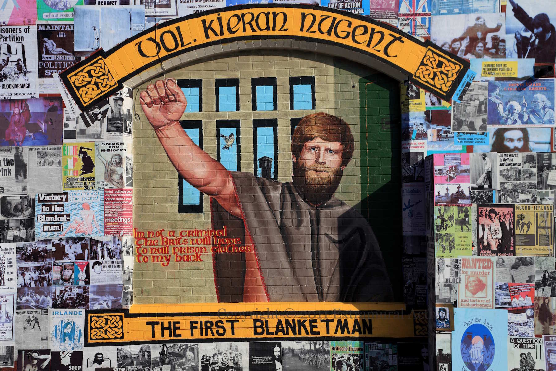 “I’m not a criminal. The Brits will have to nail prison clothes to my back.” For the previous mural, and some background about Nugent going “on the blanket”, see M02550.