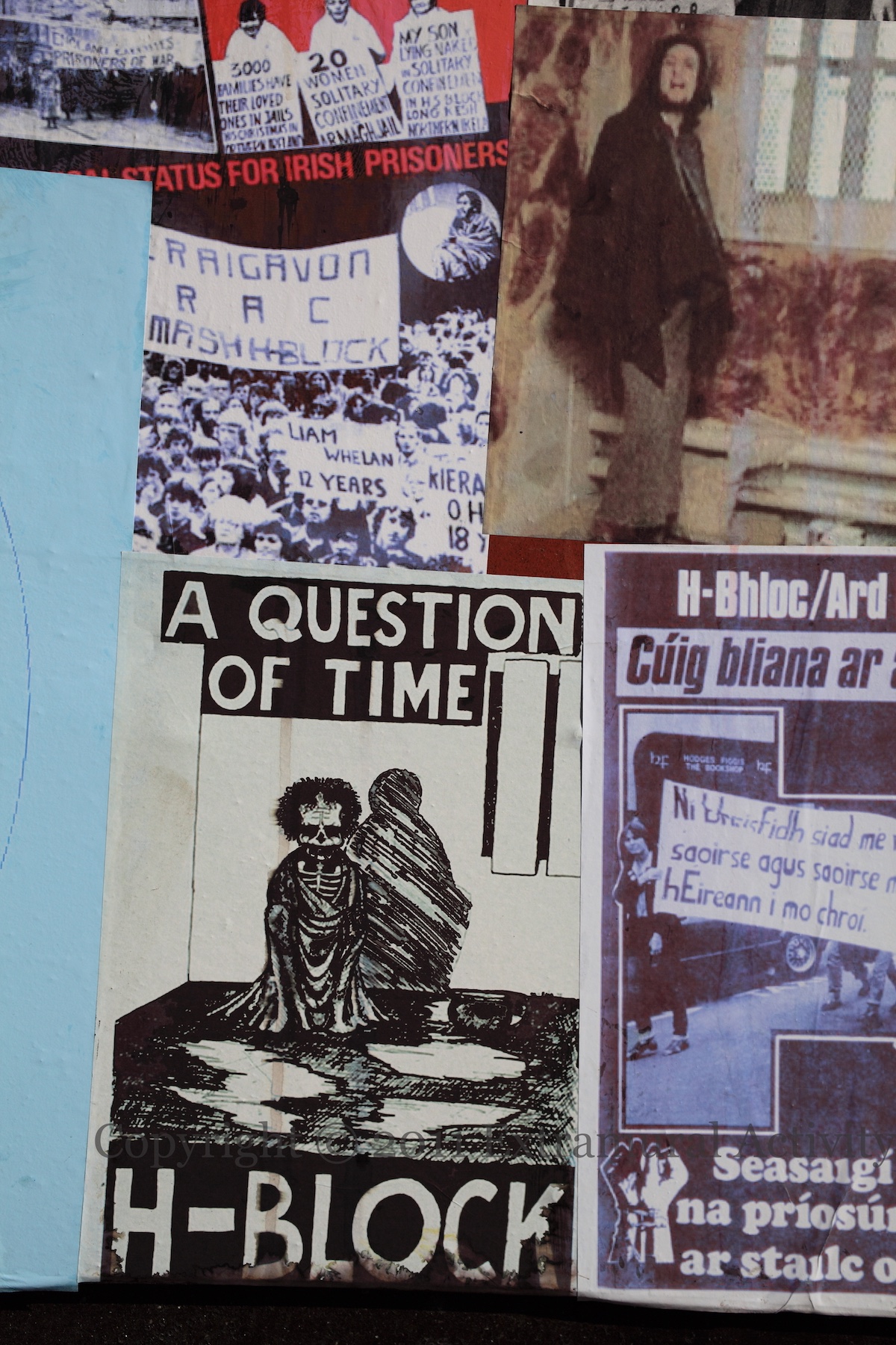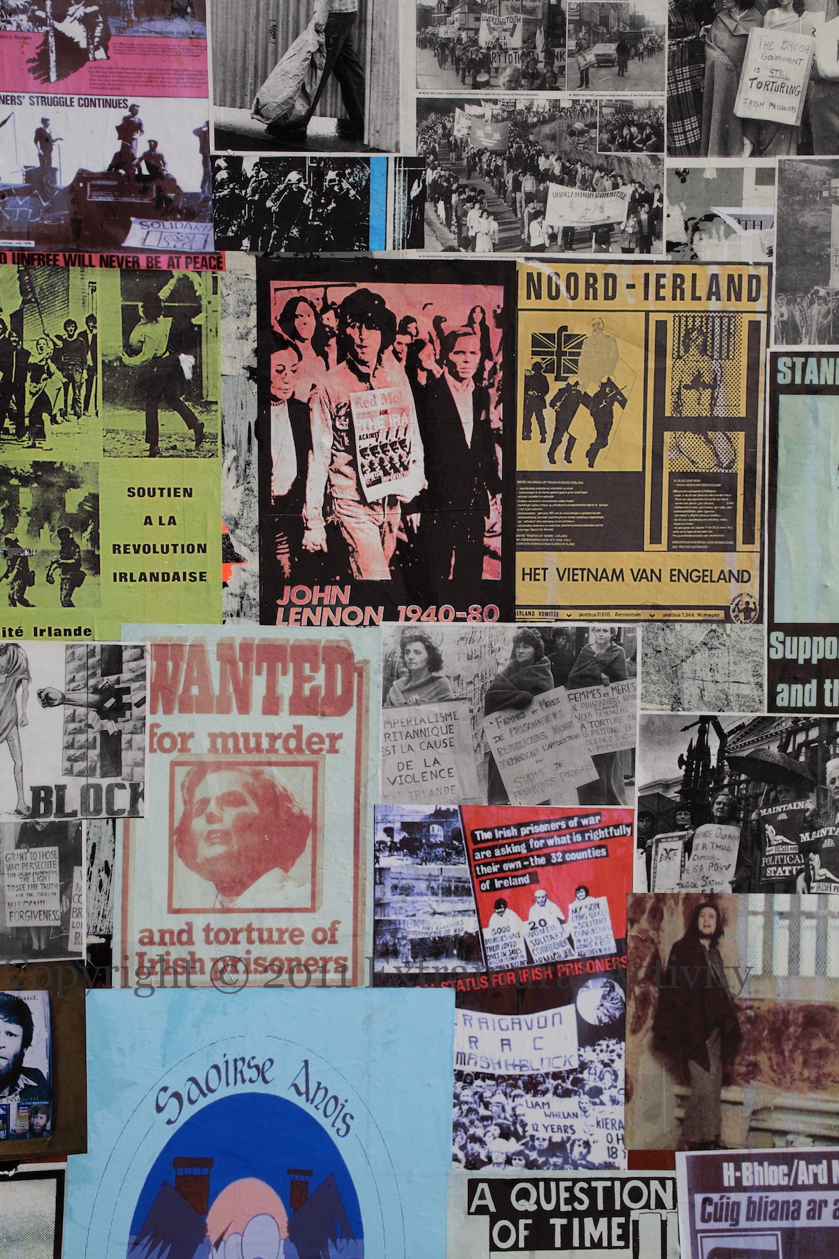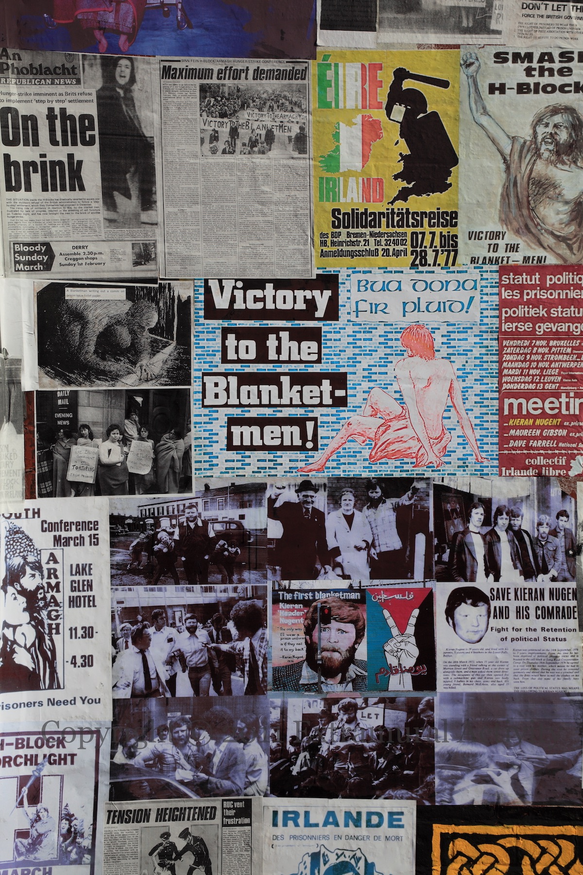 When the mural to “the first blanketman” Kieran Nugent mural (in the Rock streets) was re-done in February 2011, it was initially framed with a terrific selection of posters from the period, many of them from continental Europe, about Kieran, the blanket protest, and hunger striker.