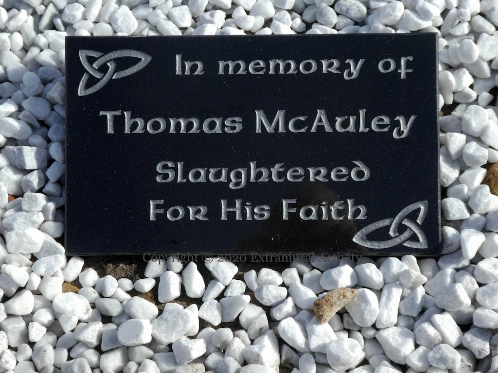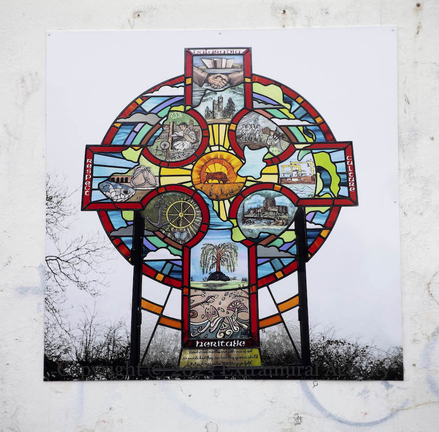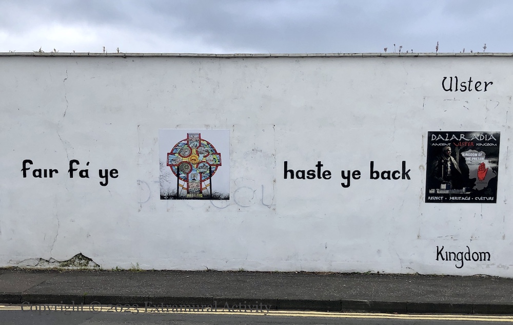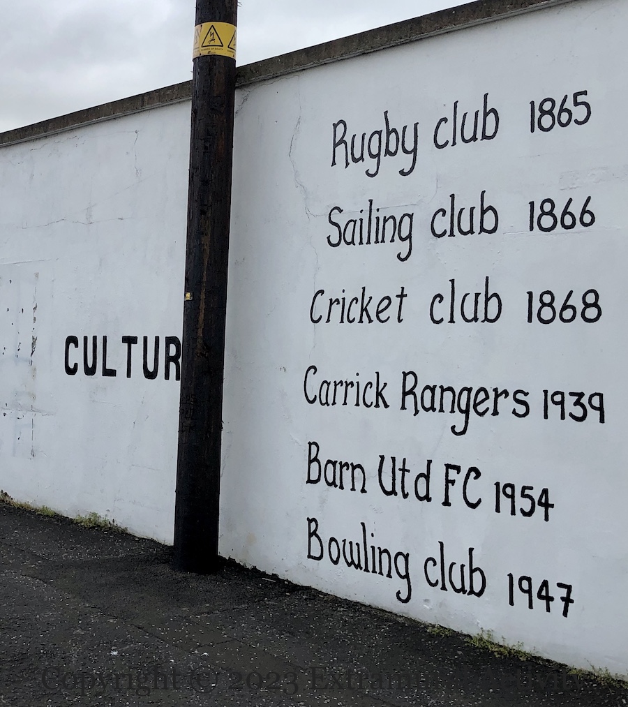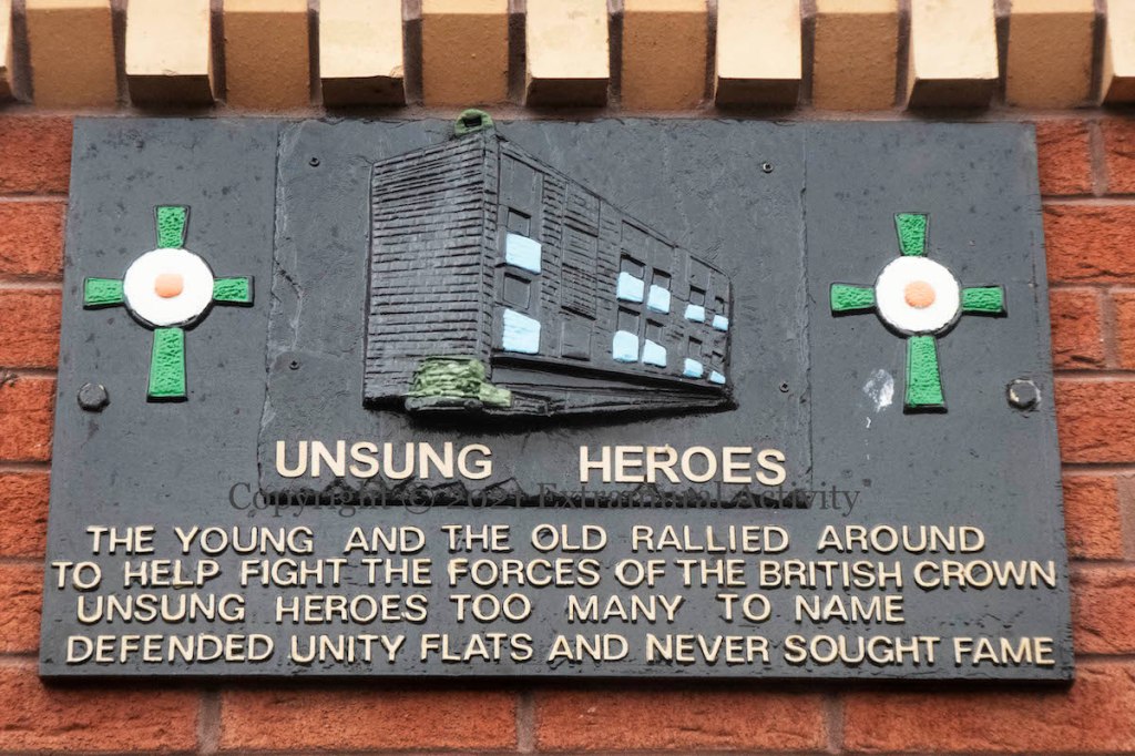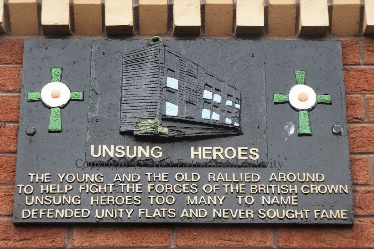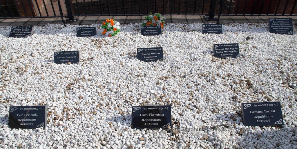 The wall was completed by early December, 2024, and the roll of honour added in the top-left corner by the end of the month. Those listed are: Hugh Ferguson, Danny Loughran, Brendan McNamee, Miriam Daly, Ronnie Bunting, Noel Little, Jim Power, Matt McLarnon, Joe Craven, Paul “Bonanza” McCann, Thomas “Ta” Power, John O’Reilly, Mickey Kearney, Emmanual Gargan, Gino Gallagher, John McColgan, Patrick Campbell, Christopher “Crip” McWilliams, Harry O’Hara, Barry “Bar” McMullan, Martin McElkerney, James McWilliams. The last five post-date the Agreement, starting with Patrick Campbell, who died in 1999 at the hands of drug-dealers in Dublin (Irish Times | Bel Tel).