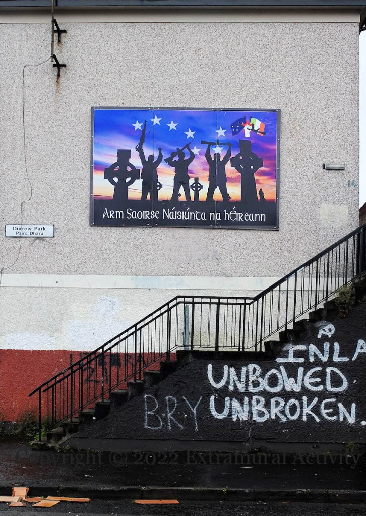 The large Miriam Daly board in Oakman Street was temporarily taken down while symbols and slogans to mark the fiftieth anniversary (“1974-2024”) of the creation of the INLA on December 8th, 1974 (WP) were mounted.