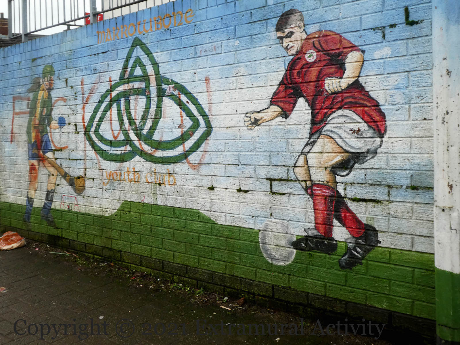 Máirtín Ó Dochartaigh, one of the founders of Club Óıge Mhachaıre Botháın in 2001, died in 2011. The club was renamed in his honour in ?2020? as Cumann Óıge Uí Dhochartaıgh (Fb | ig) (An Phoblacht). The mural, bearing the original name of the club, dates back to 2012.