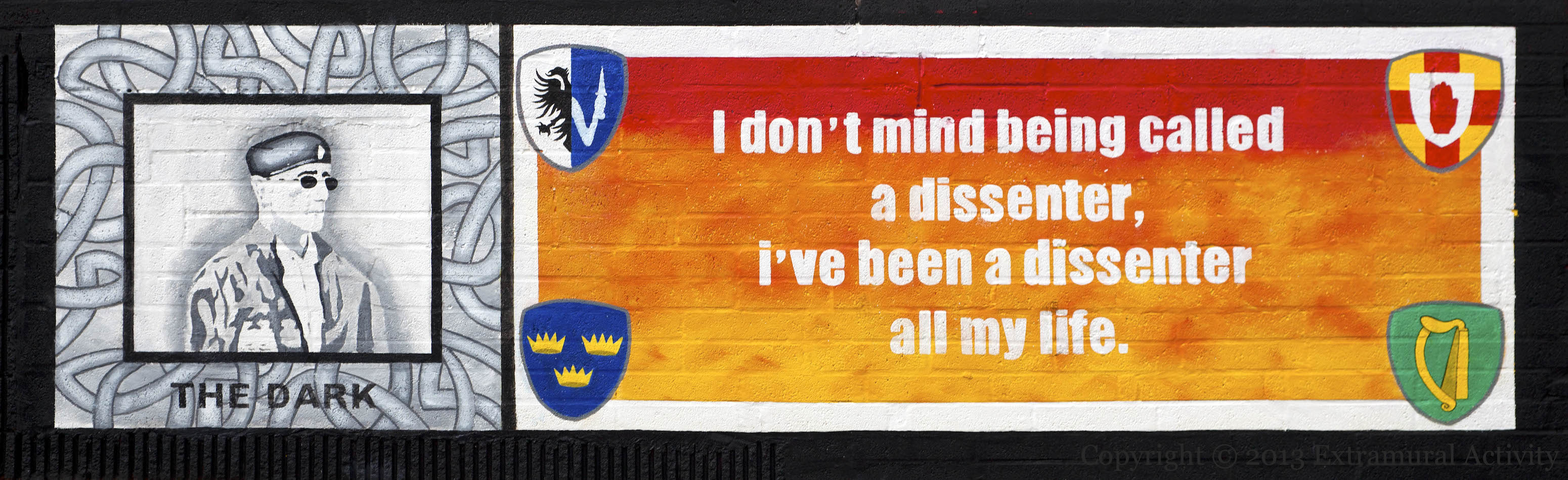 The artist is DD Walker (“Rebel Rebel”), who painted the “Against Established Law” Che Guevara mural last (2013) October which this replaces.