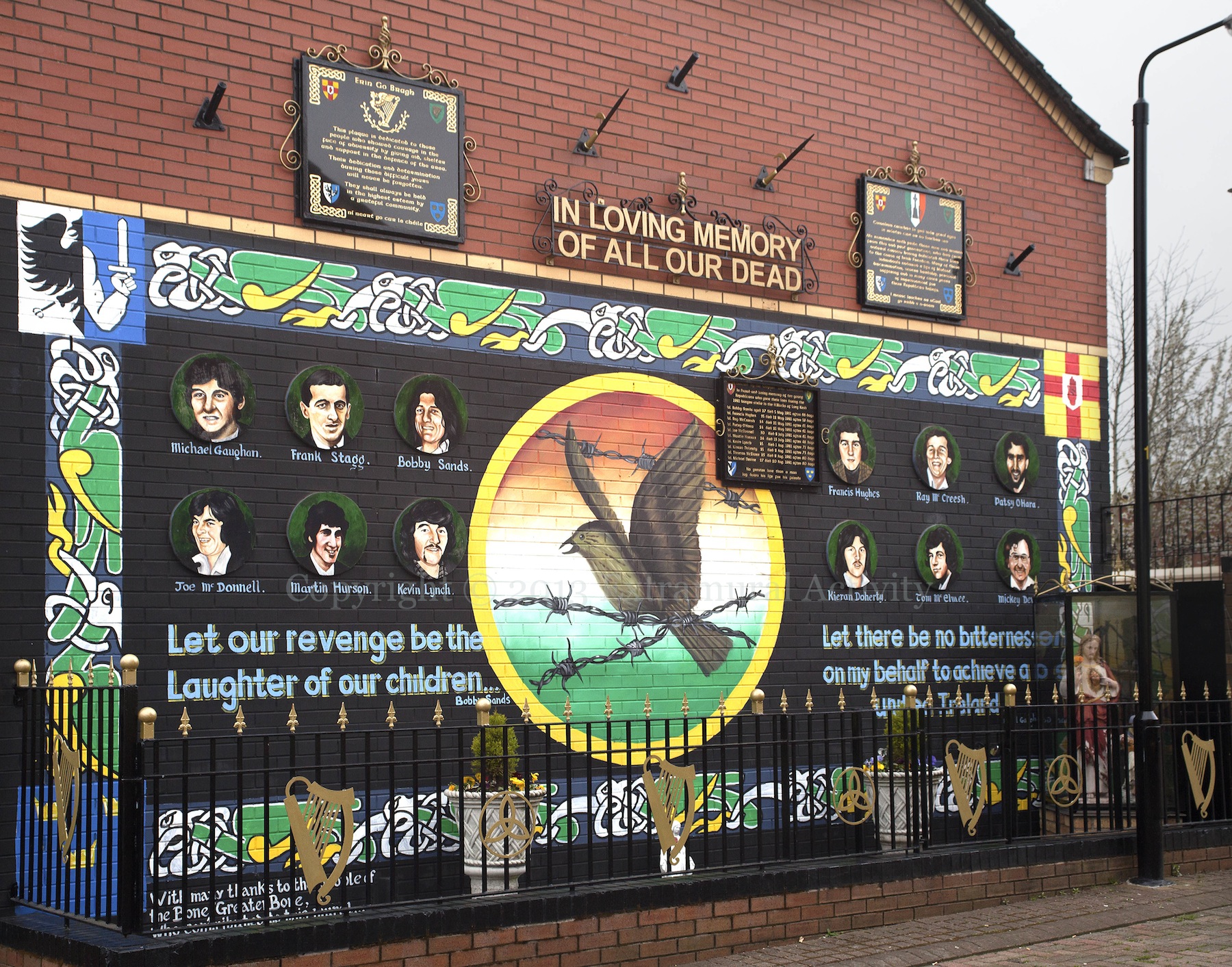 The second read, “In memory of our families, friends and neighbours murdered in the troubles. Dedicated to all the people from the Bone, Ballybone and greater Cliftonville area who lost their lives to the armed forces of Britain and Loyalism. They tried but failed to break their spirits and deny them their rights as equals. Ar dheıs Dé go raıbh a n-anam.”