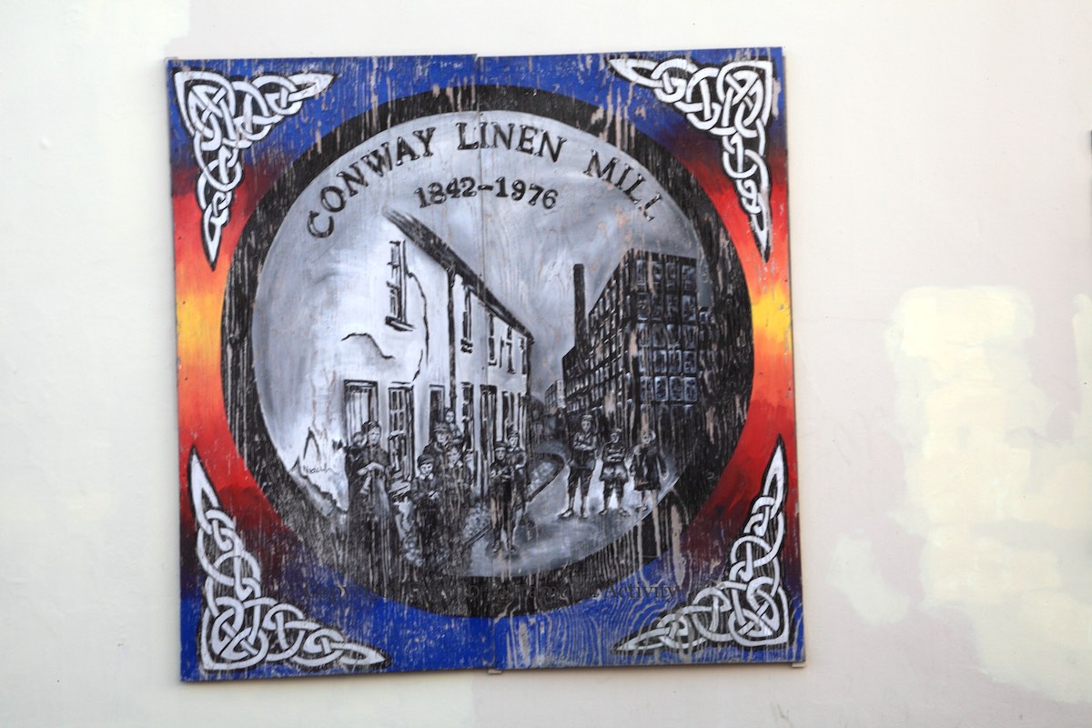 “You might easy know a doffer when she comes to town/With her long yellow hair and her pickers hanging down/With her rubber ties [tied] before her and her scraper in her hand. … [the verse concludes: She’ll never get a man]” (Traditional Music). Conway Mill closed in the mid-70s but from 1982 onward has been used for community development; since 2000 it has been a listed building (Conway Mill).