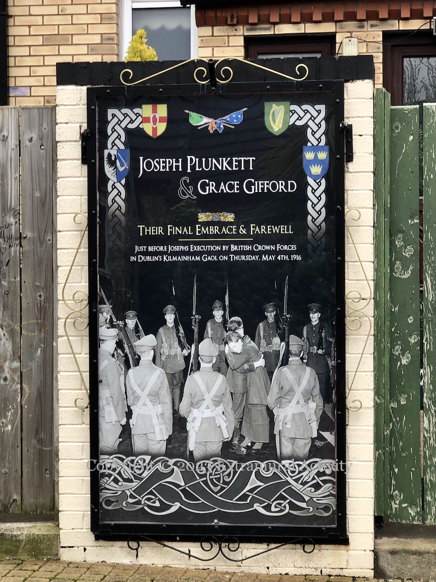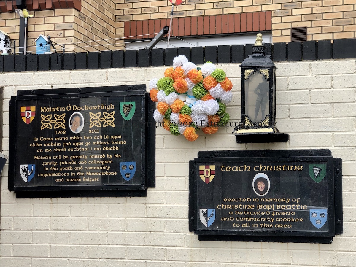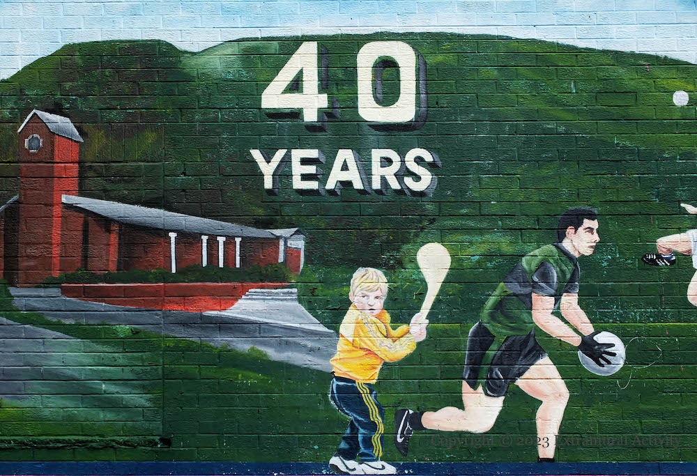 Féıle An Phobaıl (web) is now headquartered in the renovated (BCC) St Comgall’s on Divis Street in Ionad Eileen Howell, and during this year’s (2025) festival is home to an exhibition called “Vibrant Colours, Violent Past”, the centrepiece of which is a 20-foot-long panoramic history of republicanism, with Wolfe Tone, James Connolly, and Martin McGuinness as pivotal figures.