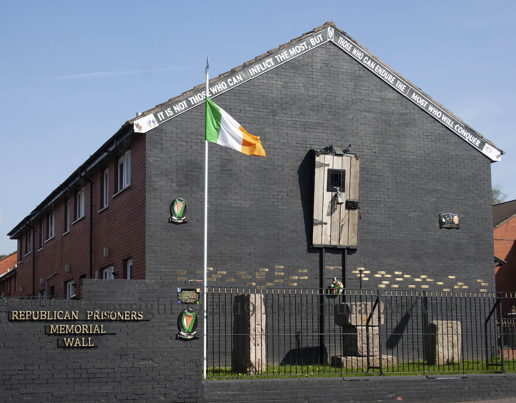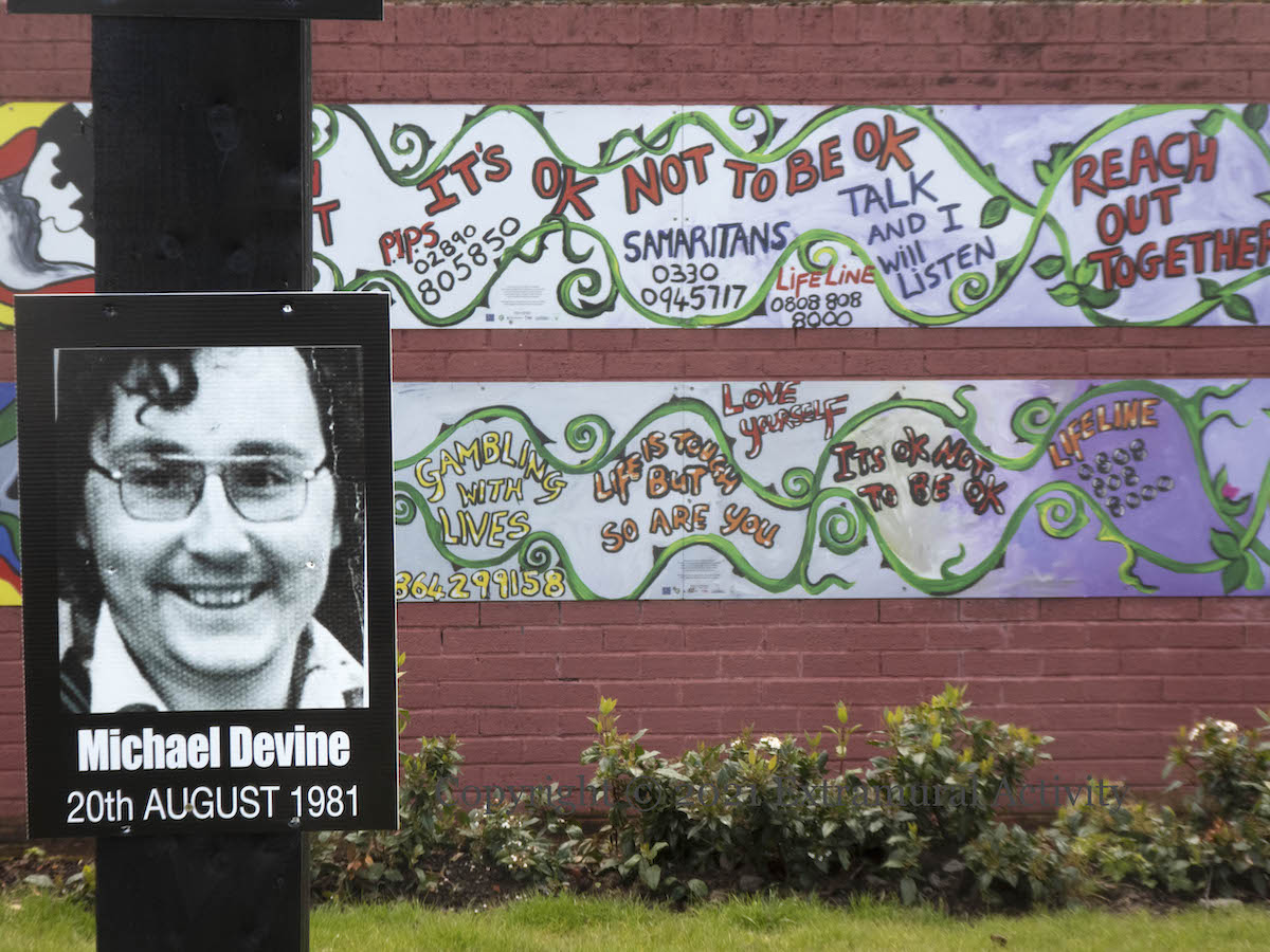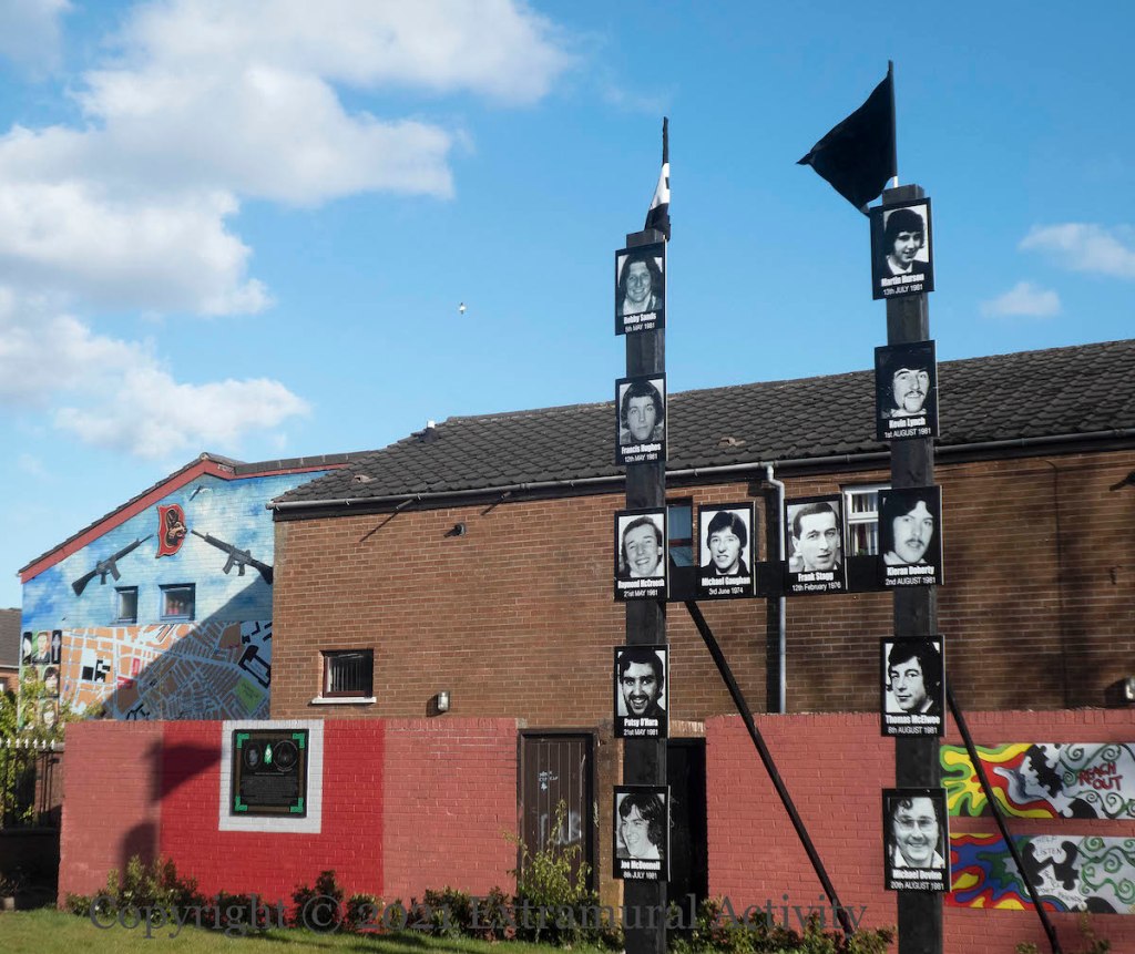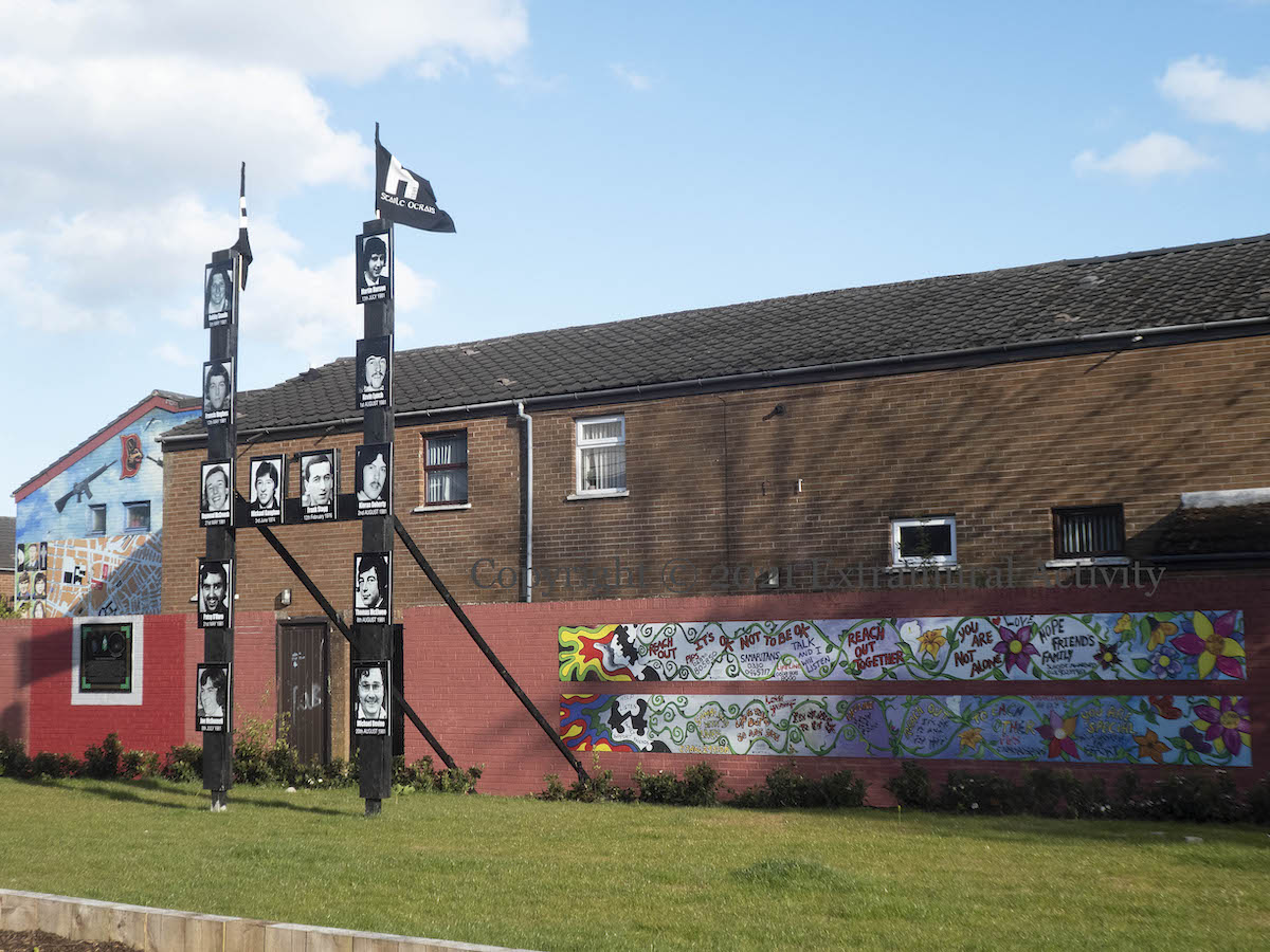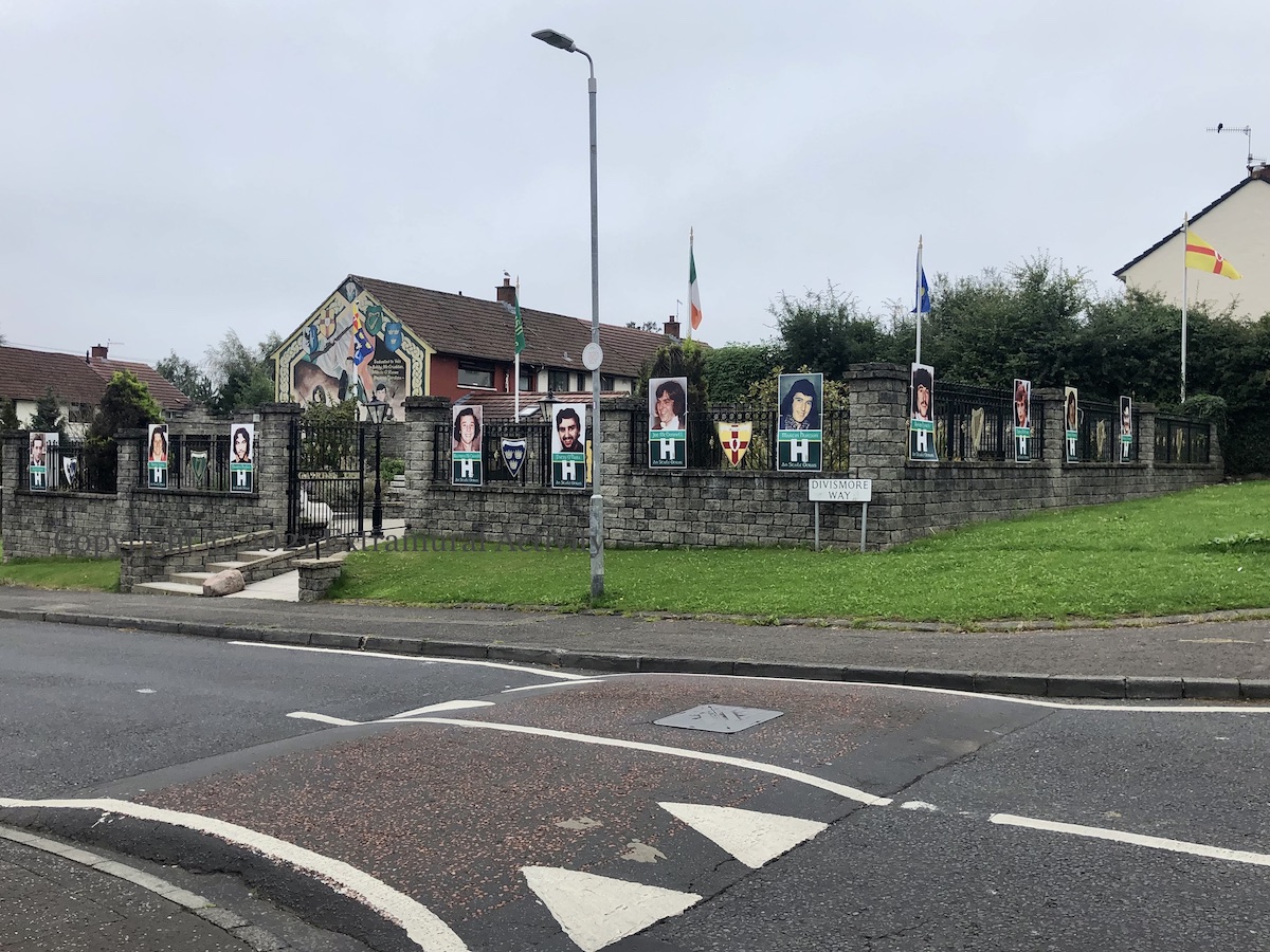 For the 40th anniversary of the 1981 Hunger Strike, portraits of the deceased ten (plus Frank Stagg and Michael Gaughan from the 1970s) were placed on the railings of the Ballymurphy memorial garden. There is a new (compared to 2006 and 2008) set of plaques, erected in 2017: