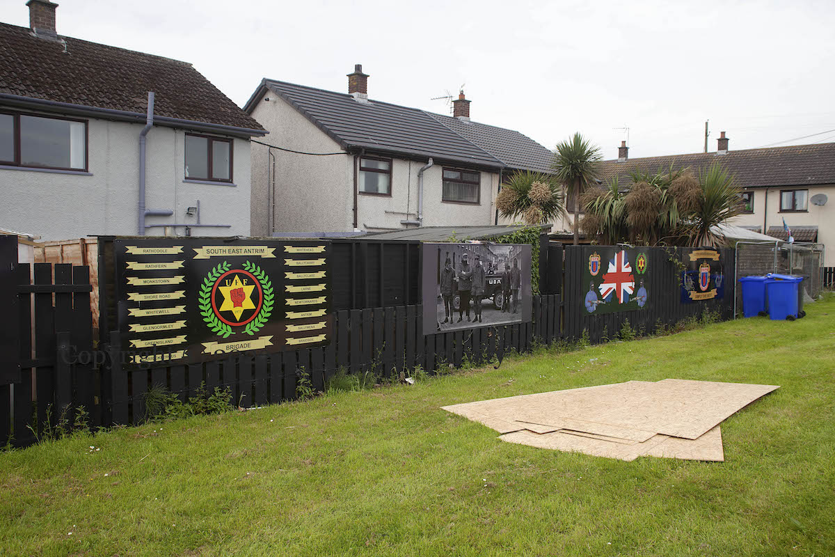 Here are dozen South East Antrim UDA boards along Shanlea Drive in Ballycraigy (Larne). The first four commemorate the massive bonfire built each year (see Commonwealth Handling Equipment) – “We lead, others follow”.