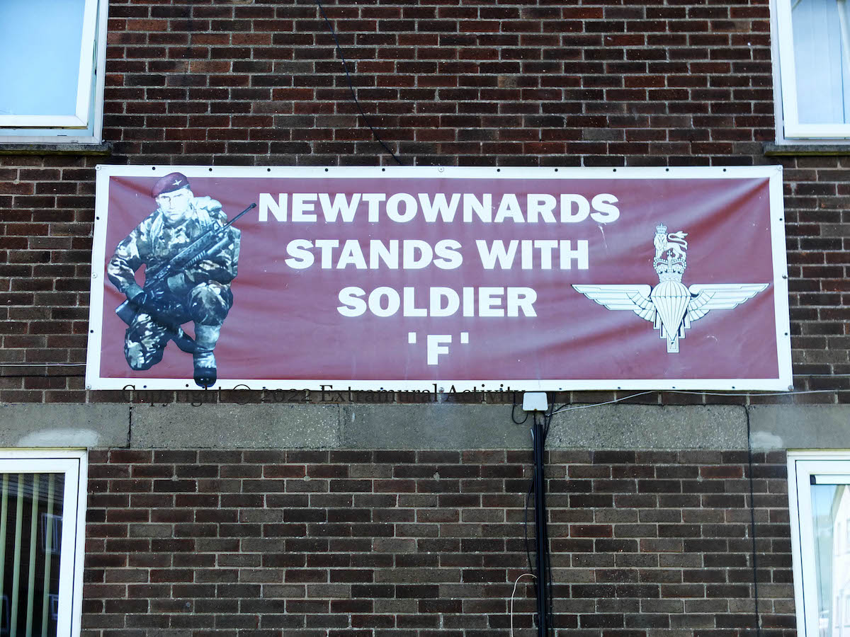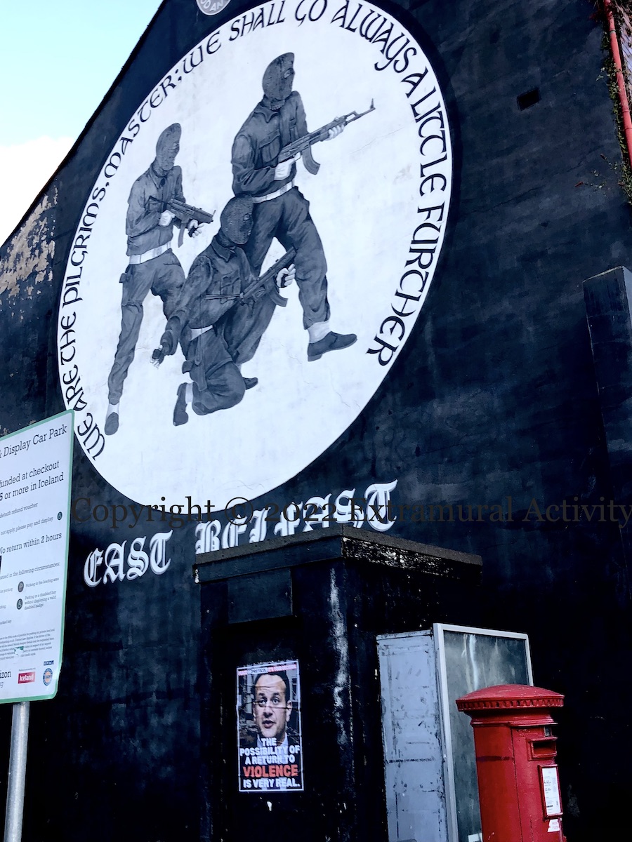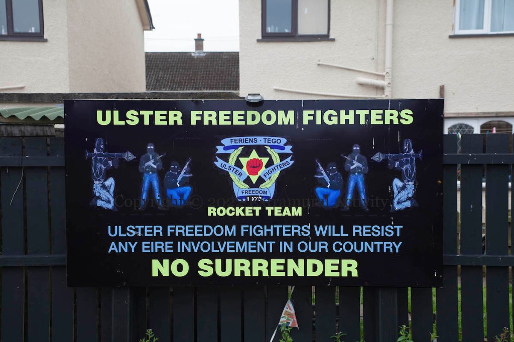 “… to vote”, in the upcoming Westminster election. These posters are all over the Shankill in anticipation of the election on July 4th. They don’t recommend any particular party, but the free-floating Northern Ireland indicates that a unionist candidate is meant, which would mean Frank McCoubrey (DUP), Ben Sharkey (UUP) or Ann McClure in Belfast West and Phillip Brett (DUP) or David Clarke (TUV) in Belfast North, where no UUP candidate is standing (BBC).