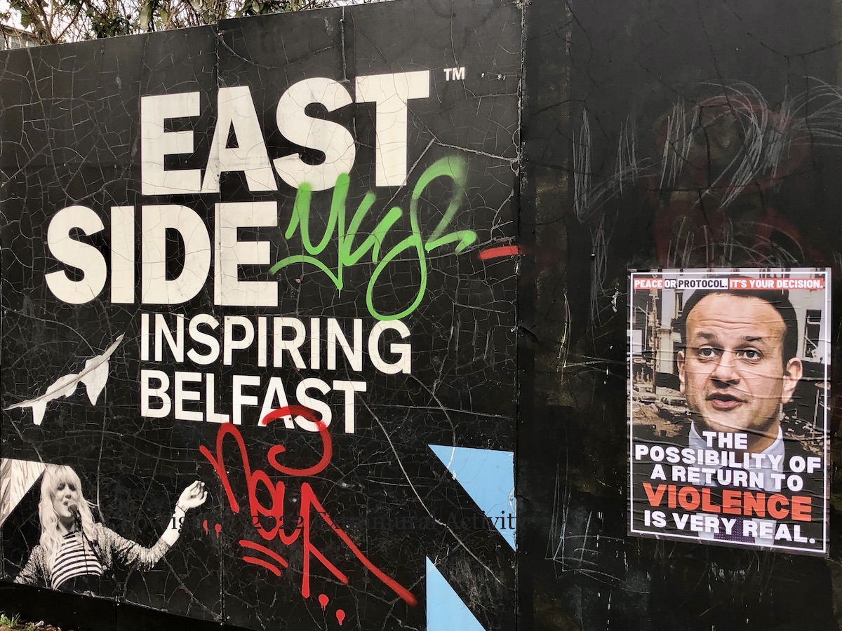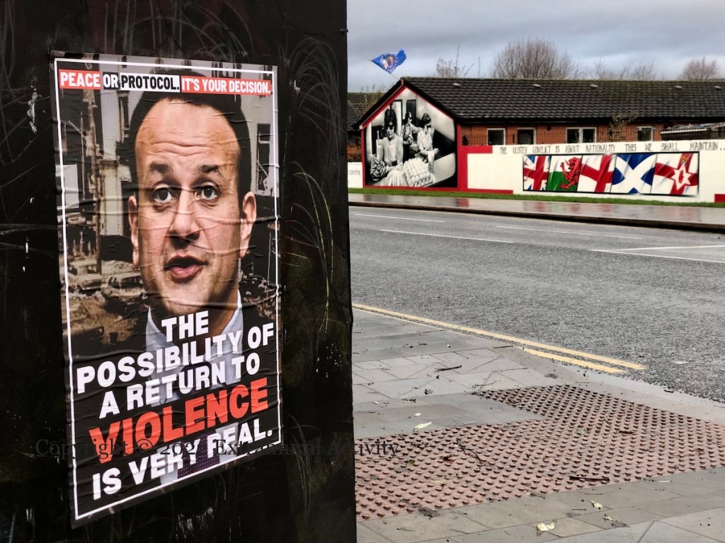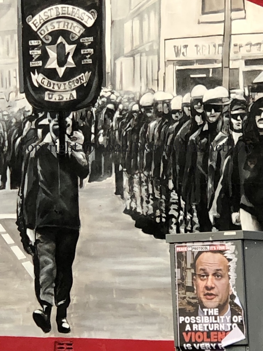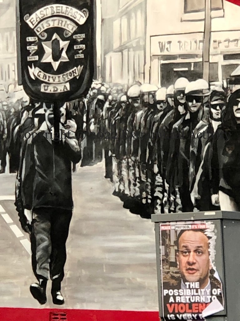 Here is a second set of images showing the “peace or protocol” poster that has appeared in PUL areas in the city, three in east Belfast – along the Newtownards Road. Two others in north Belfast were seen previously in A Return To Violence, which also explains the poster.