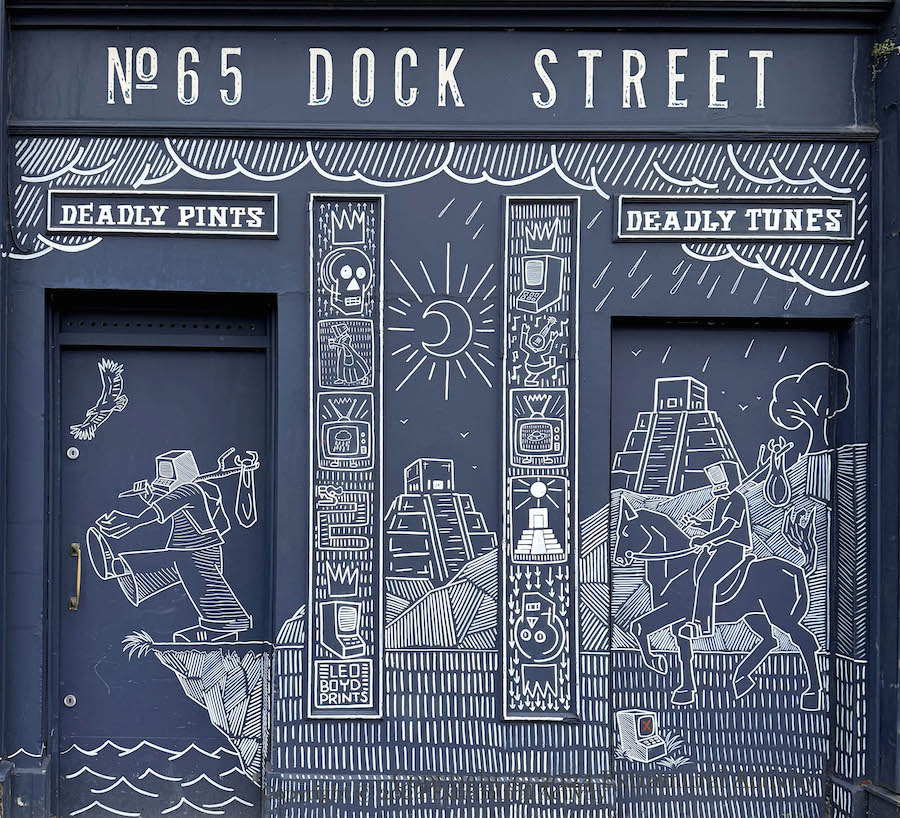 “Deadly” here means “excellent” or “terrific”, perhaps from the idea of “hitting the (living!) target” (Stack) – it is a piece of southern slang that artist and print-maker Leo Boyd (web) perhaps picked up on his journey from Bristol to Dublin to Belfast (Boyd | Atom) where he is one of the Vault Studios artists (Vault).