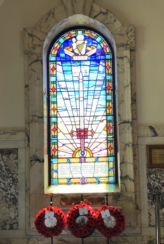 The Don Patricio/Patrick O’Connell mural at the bottom of the Whiterock Road was refreshed for Féıle 2024. The major change is in the middle of the mural, where Lionel Messi – who went to Paris Saint-Germain in 2021 and then to Inter Miami in 2023 – has been replaced by current stars Aitana Bonmatí and Lamine Yamal. (A modern soccer-ball replaces the leather ball of the original mural, patches have been added to O’Connell’s jacket, and the FAI trophy and the large Cup Winner’s medal has been removed to make room for Bonmatí.) The new mural was relaunched on August 2nd, 2024, with an address by the director of the FC Barcelona museum at Camp Nou (Belfast Media).