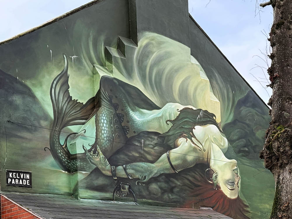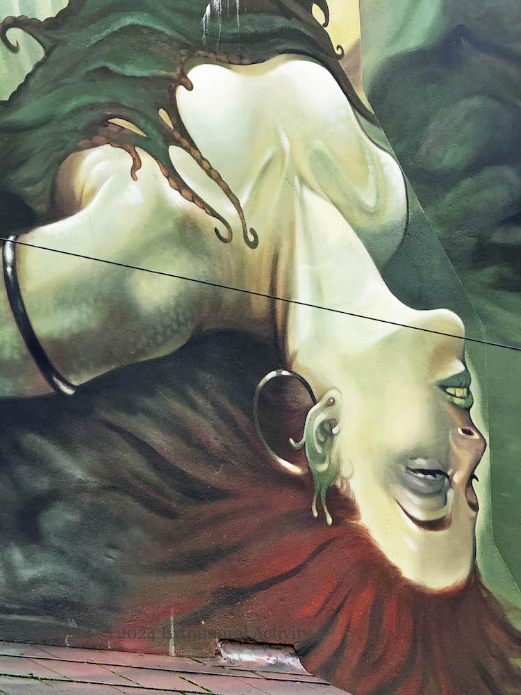 The creator is Debbie Hutchings, a member of the New Life City church (Fb) (Belfast Media); the piece is on top of the ‘repent’ version of the New Life mural, and it contains scriptural quotations from John 3:16: “For God so loved the world He gave His only begotton [begotten] son so that whosoever believes in Him should not perish but have everlasting life.” and John 3:8: “The wind blows as it chooses, you can hear it’s [its] sound but you do not know where it came from or where it is going; so it is with the hearts of those born of the spirit”. There is video of Hutchings at work in this Irish News video on Fb and at the BelTel.