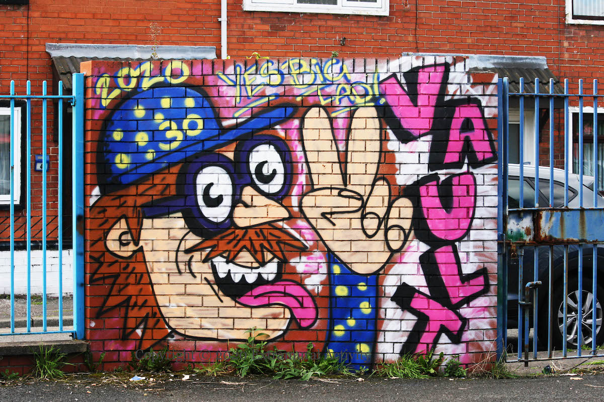 “The title of the piece is ‘You can go Anywhere’ to show that with hard work and determination, you can explore the world. The mural is Sponsored by local Butchers shop Hugh Linton Butchers and R City youth group which are an award-winning organization helping Communities Integrate Through Youth. With the help of Jonathan Hodge local community volunteer. The taxi’s number plate HWL 1970 is a nudge towards the establishment founder Hugh Linton” (Belfast Walking Tours Fb).