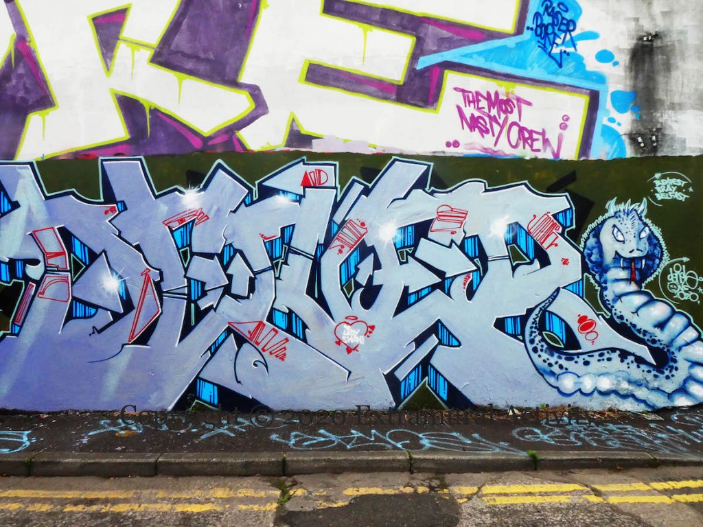 Writing by DENEB in McKibben’s Court with the snake as an animal familiar (see Belfast Beyond for another DENEB snake).