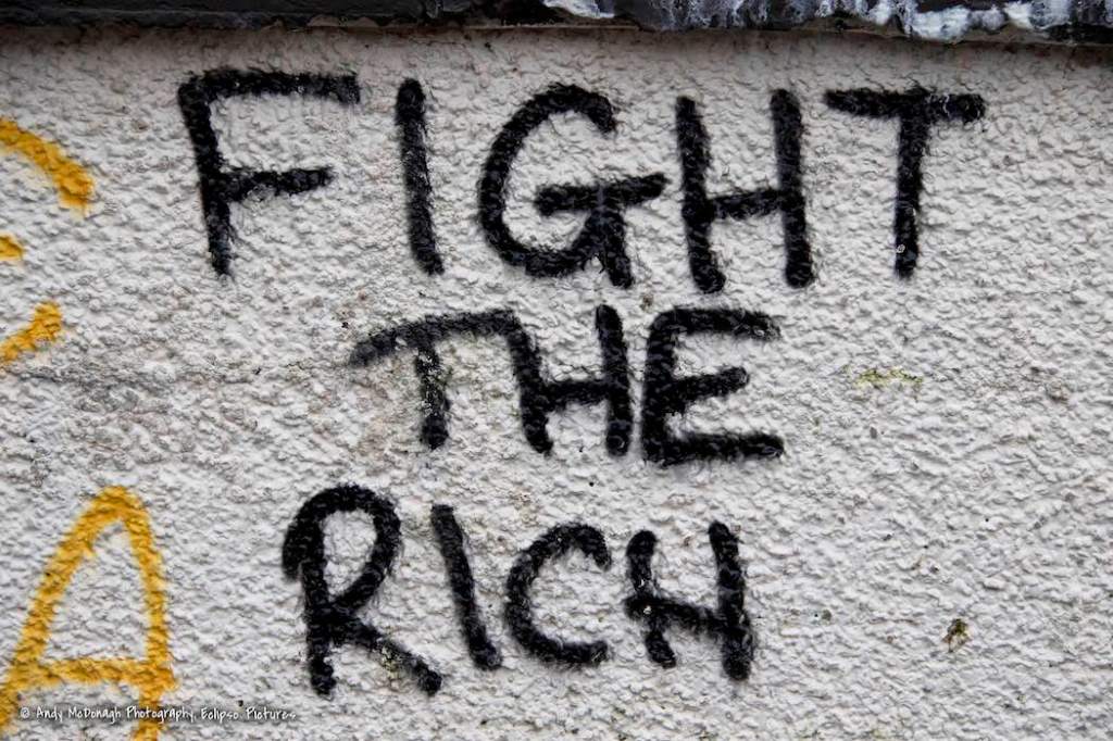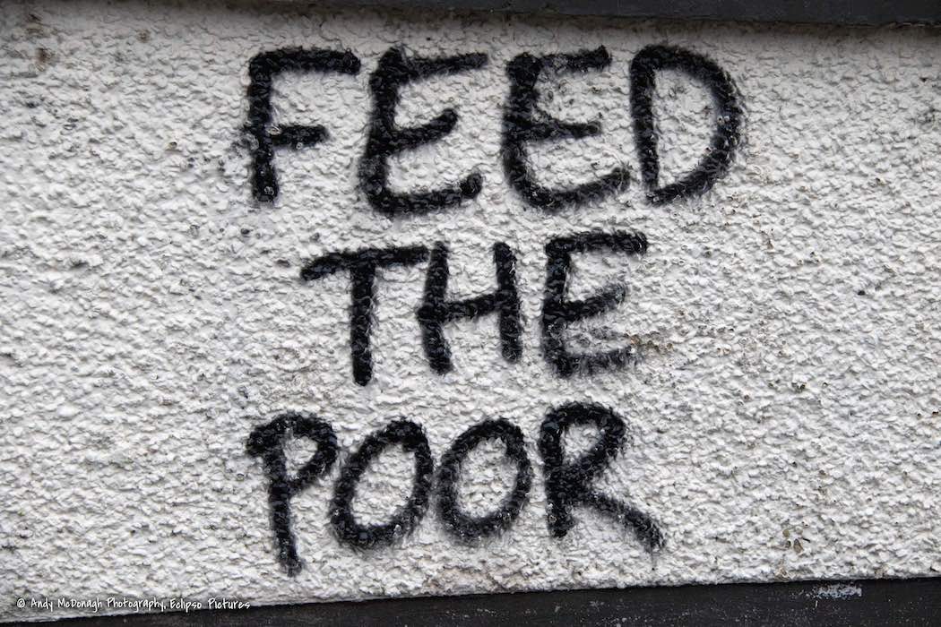 “Fight the rich, feed the poor – Éıstıgí” (also “Free Gaza”) along Lecky Road in Derry’s Bogside.