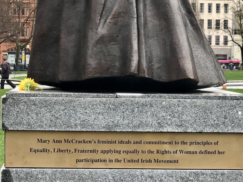 “Mary Ann McCracken’s feminist ideals and commitment to the principles of Equality, Liberty, Fraternity applying equally to the Rights of Woman defined her participation in the United Irish Movement.” For McCracken’s connection to the 1798 Rebellion, see These Are Times That Try Men’s Souls.