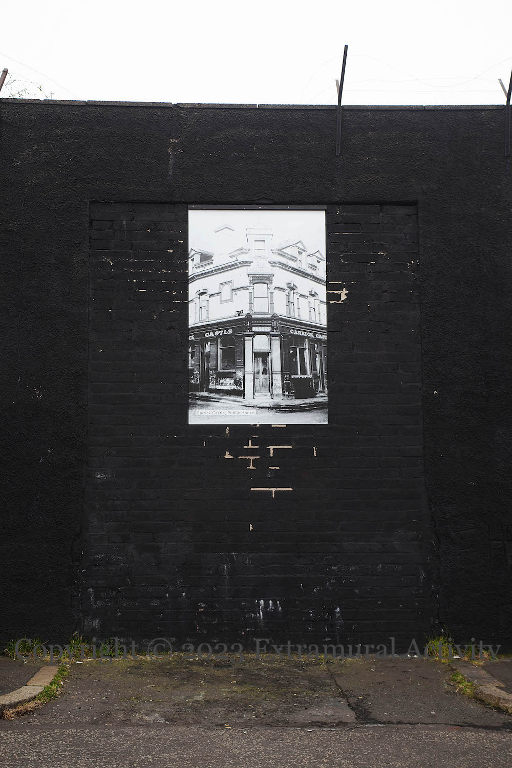 Below are two of the fifteen boards around the corner in Regent Street, showing the Carrick Castle public house and the old Unity flats.