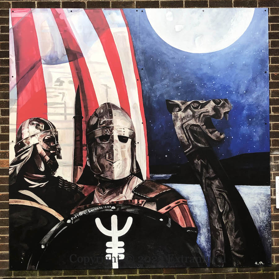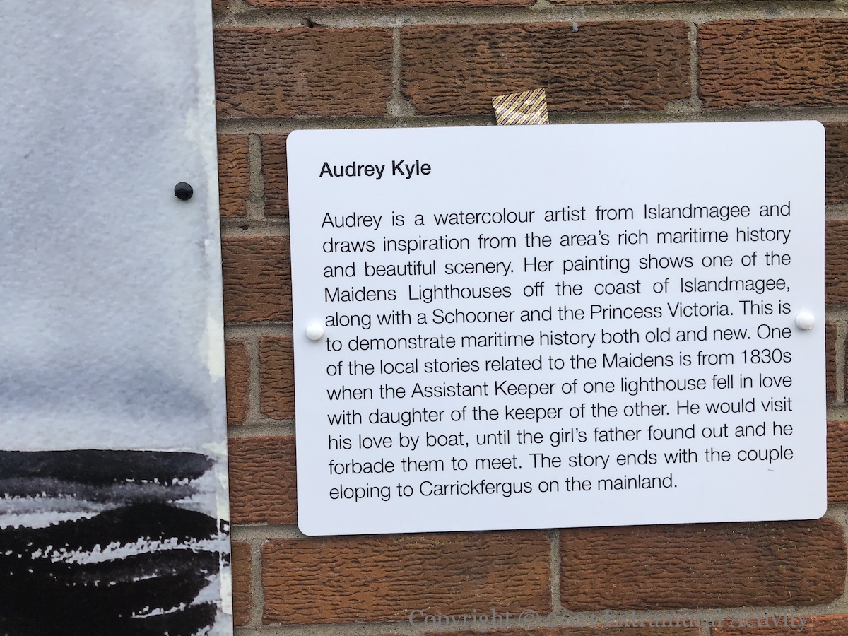 The official name of the outfit is “Valentine”. This is another of the Game Of Thrones-inspired pieces in Larne town centre – Lower Quay St in this case – sponsored by the Mid & East Antrim Council, with Larne Renovation Generation (Fb) and the Traders Forum (BelTel | News Desk | Fb video). See previously: Larne – The Original Tourist Resort | The Battle Of Ulfreksfjord | Dire Wolf.