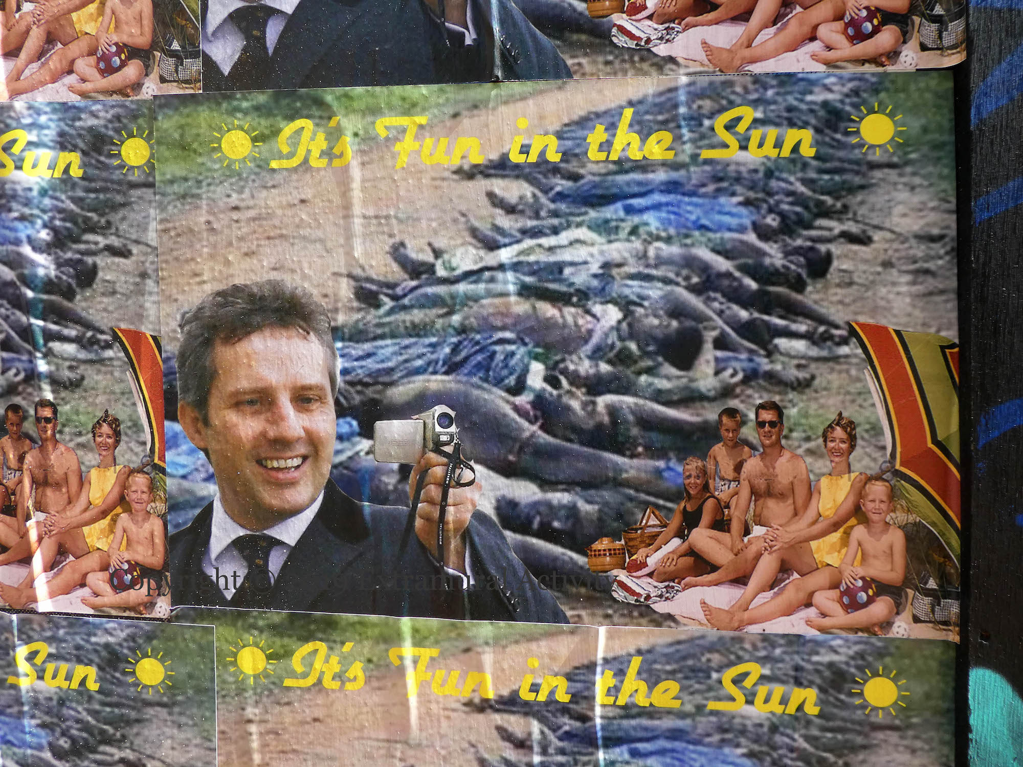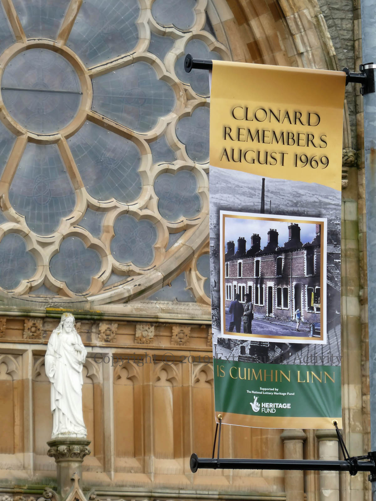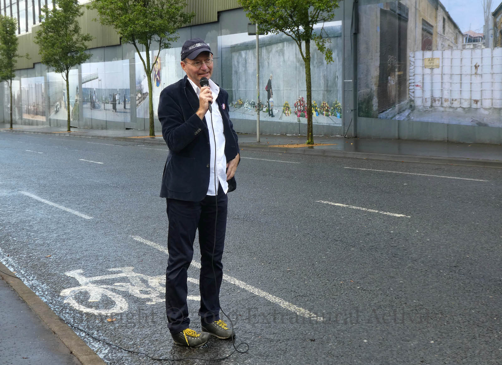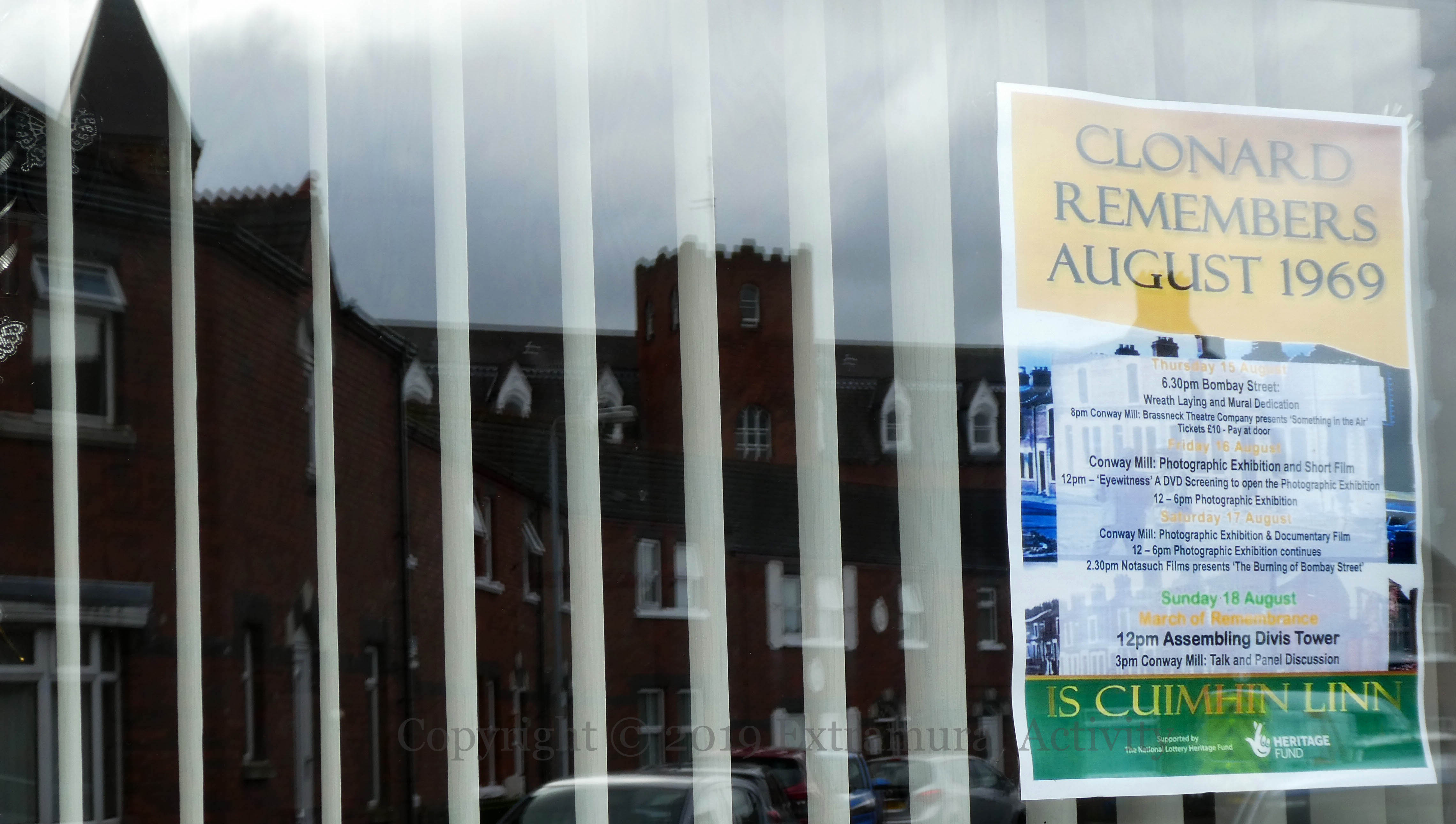 Friday (September 27th) saw the launch of Kai Wiedenhöfer’s ‘Wall On Wall’ exhibition, mounted to coincide with the 50th anniversary of the Cupar Way “peace” line and the 30th anniversary of the fall of the Berlin Wall. On the wall there are 36 images of walls from ten sites across the planet, taken between 1989 and 2018: Baghdad, Korea, Cyprus, USA-Mexico, Spain & Morocco, Israel-Palestine, France-UK, Greece-North Macedonia, Berlin. (His latest book is called Confrontier – the web site includes 53 images.)