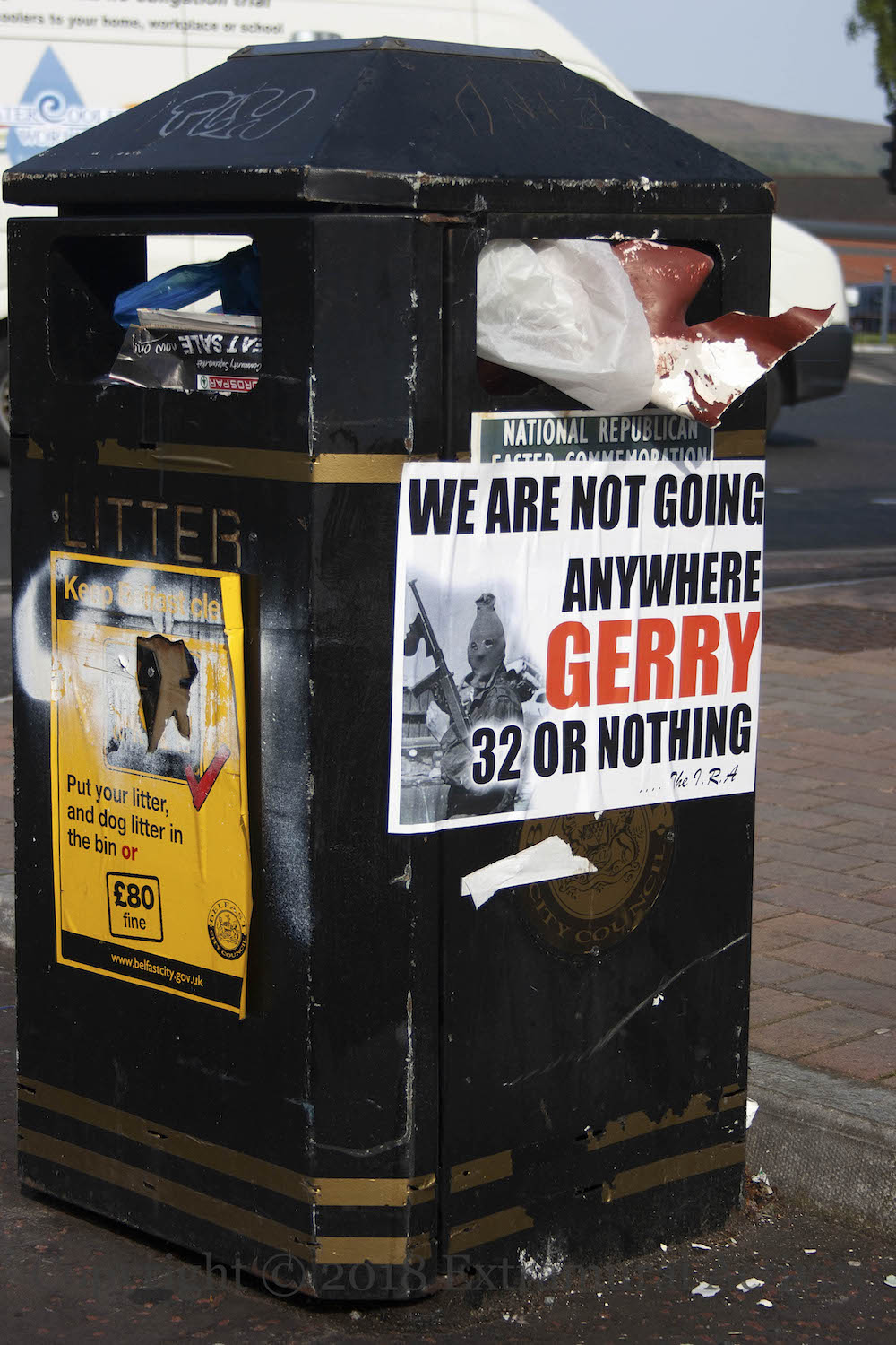 This poster, which is all over the lower Falls, is in response to recent Gerry Adams interviews, one with Peter Taylor, in which he told dissidents to “Go away”, and aninterview with Andrew Marr where Adams said that the IRA is gone: “We are not going anywhere, Gerry. 32 [county Ireland] or nothing … the IRA.”
