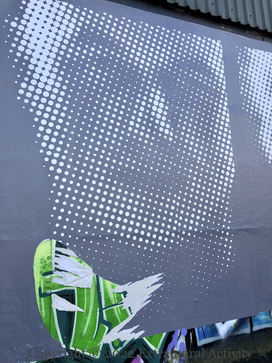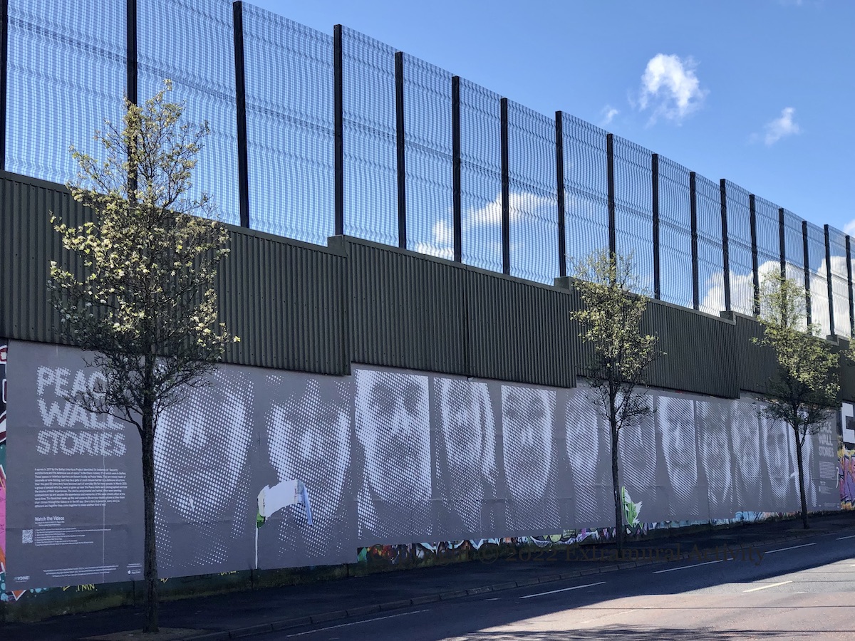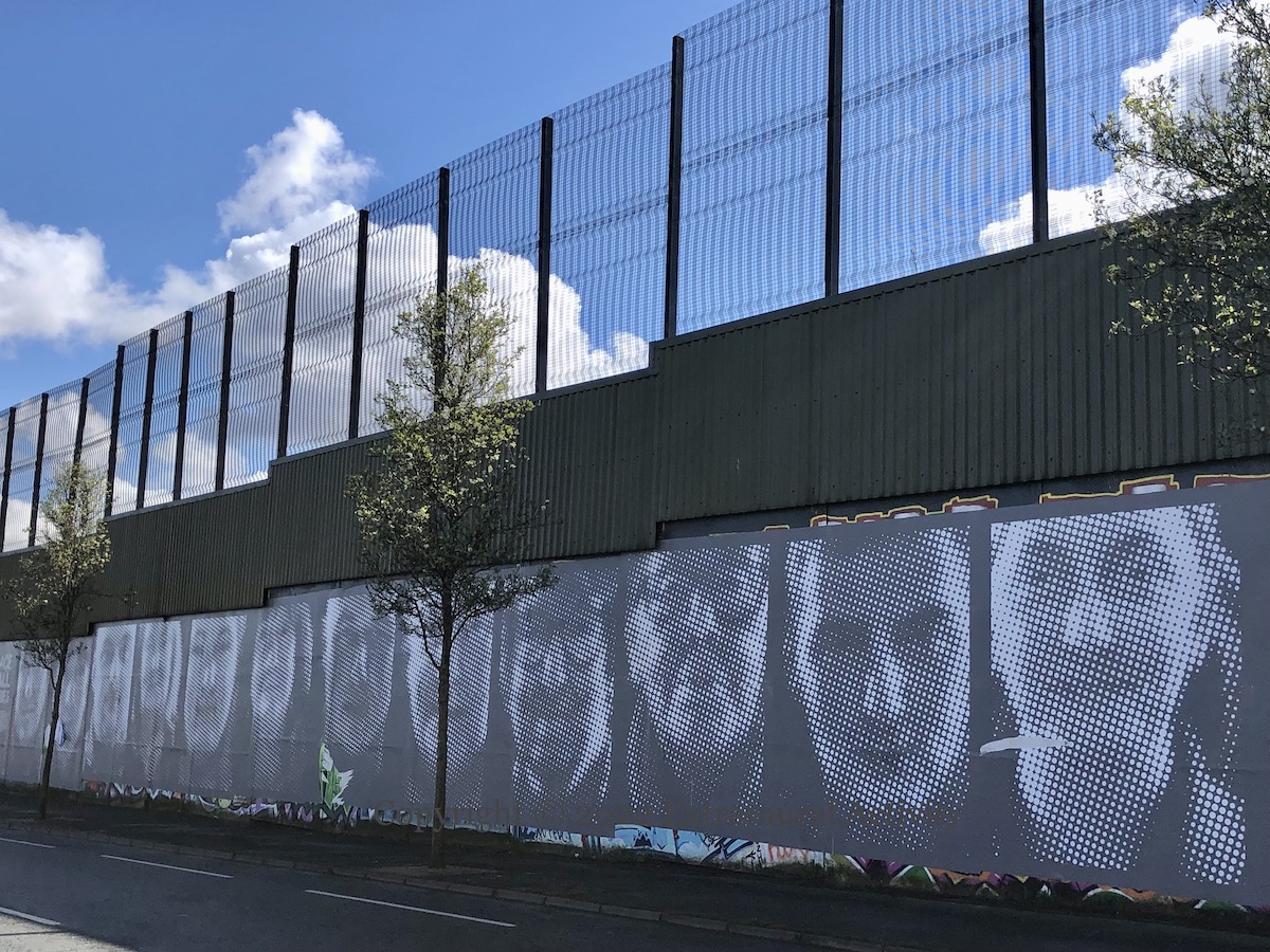 Here are two signs of protests at the NI Protocol along with the third version of graffiti complaining about parking spaces being taken by people working at the Boucher Road complexes. The original version (in 2020) threatened that “your car will be burnt” (Street View). It’s not clear whether it’s new construction or existing businesses that are the target, though the Boucher Road area has been busy, with a refit of B&Q (BelTel) and new Lidl being built next to the Olympia (BelTel) (not to mention the stage for the Ed Sheeran concerts (Newsletter)).