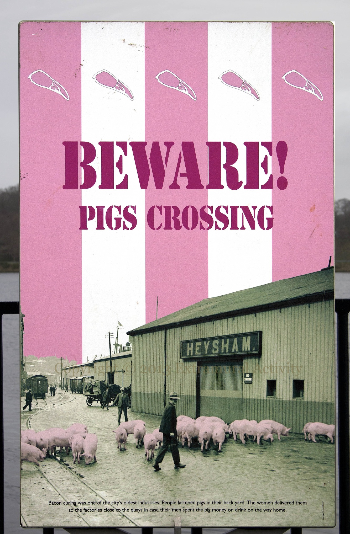 “The joke’s over lads.” One of multiple small panels, with the mounting slats in disrepair.