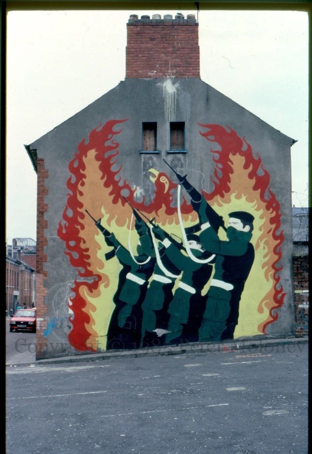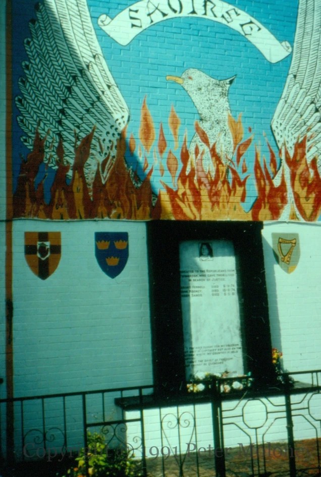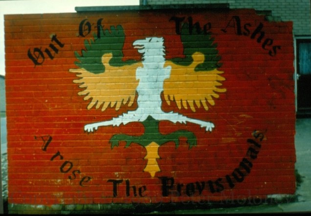 The phoenix likewise returns to murals after the peace, again to symbolise the historical struggle and in particular deceased IRA volunteers.