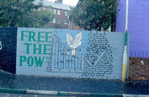 The dove stands for the peace process generally, but its most interesting use is in connection with political prisoners. The campaign to release prisoners got under way immediately in the process, i.e. 1994.