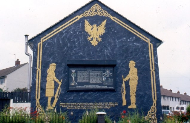 “We [IRA] Are Here To Stay” in Islandbawn Street, Belfast. The “1919” on the left was later changed to 1916.